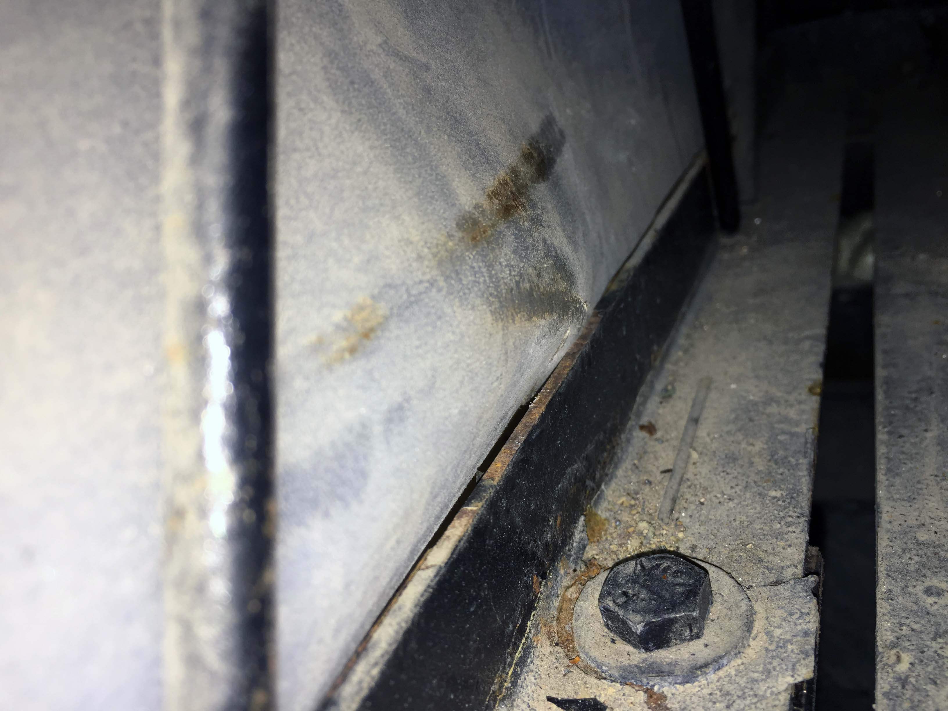 Sadly, I was so involved in being extra careful to place those senders in exactly the right spot and secure the wires that I completely forgot to take pictures of the senders on the tank. I do have one image of the fresh water tank inlet repair where you can just barely see the sender.