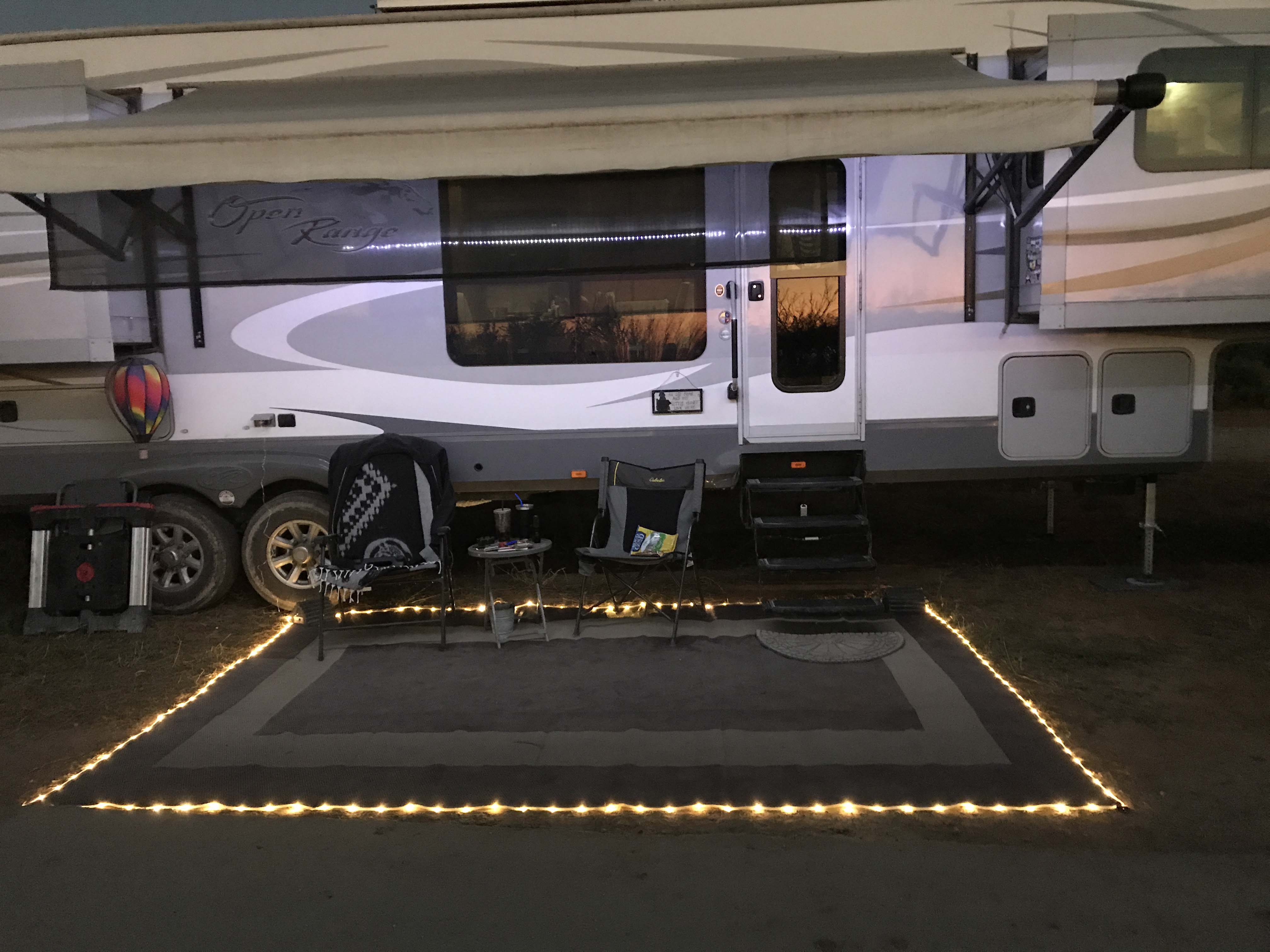 Don’t get me wrong, we are both thrilled to finally be working, but first days at gates are always stressful and worrying about Jack didn’t help. Partly we weren’t sure what to do, partly this was his first experience out in the world. We are still dealing with normal puppy stuff which is hard enough in a sticks and bricks, but super challenging when you are working and moving around. Hopefully he settles in pretty soon, and we do as well! On the plus side I bought a light up rug on clearance at Camping World a few months ago and it is working great. I hated that I couldn’t see in the darkness under the rig (rattlesnakes!) and this does a great job of lighting that area up.
