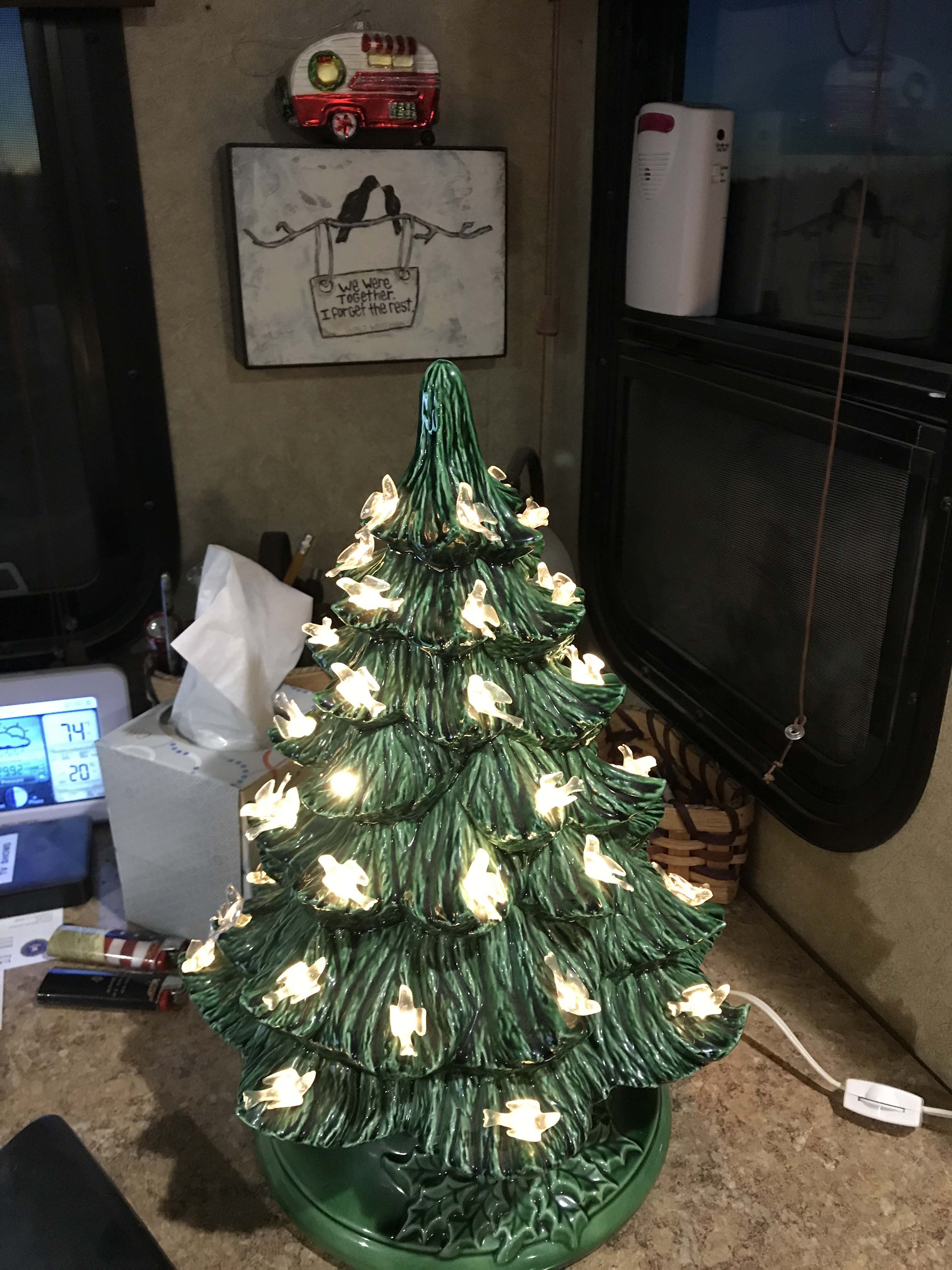 I did decorate though. It started out somewhat half-hearted because Lee went to a ton of trouble to get my ceramic Christmas tree out of the storage unit, so I should put it out. Turns out we had some lights and a few other decorations though so I had ended up having some fun with it.