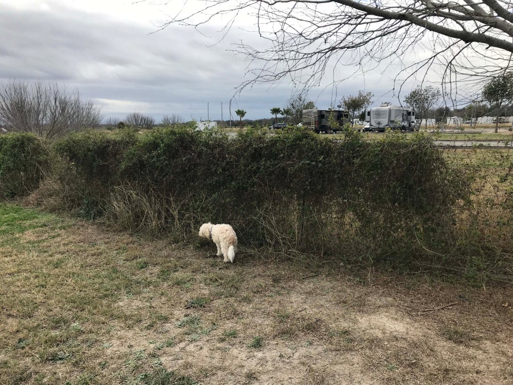 The park was in the middle of nowhere and I really couldn’t understand what the draw was until we learned it was on a river. It turned out to be pretty nice and pretty empty in off-season with lots of room for Jack to run around. The first night he did great getting settled in but it took multiple trips to get him to go to the bathroom. There are lots and lots of smells in a new place and he seemed to want to smell every one of them. That’s been our biggest problem for sure, because getting him to focus enough to go to the bathroom has been a problem. He wants to smell everything, to the exclusion of anything else, and although I get it, walking him multiple times to go to the bathroom has not been fun.