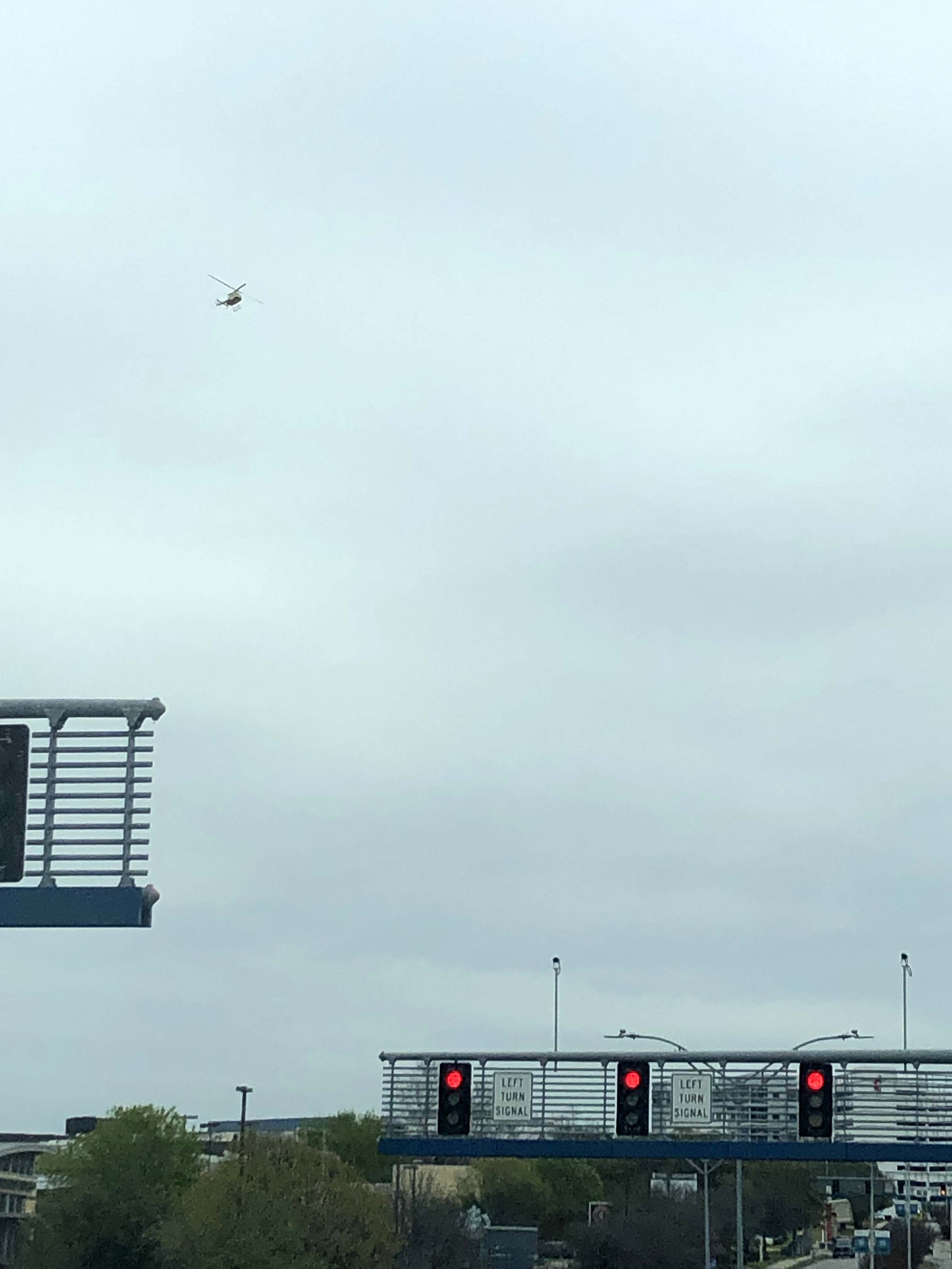 Helicopter coming into hospital (courtesy of Cori).  we think it was same one could be wrong about that.