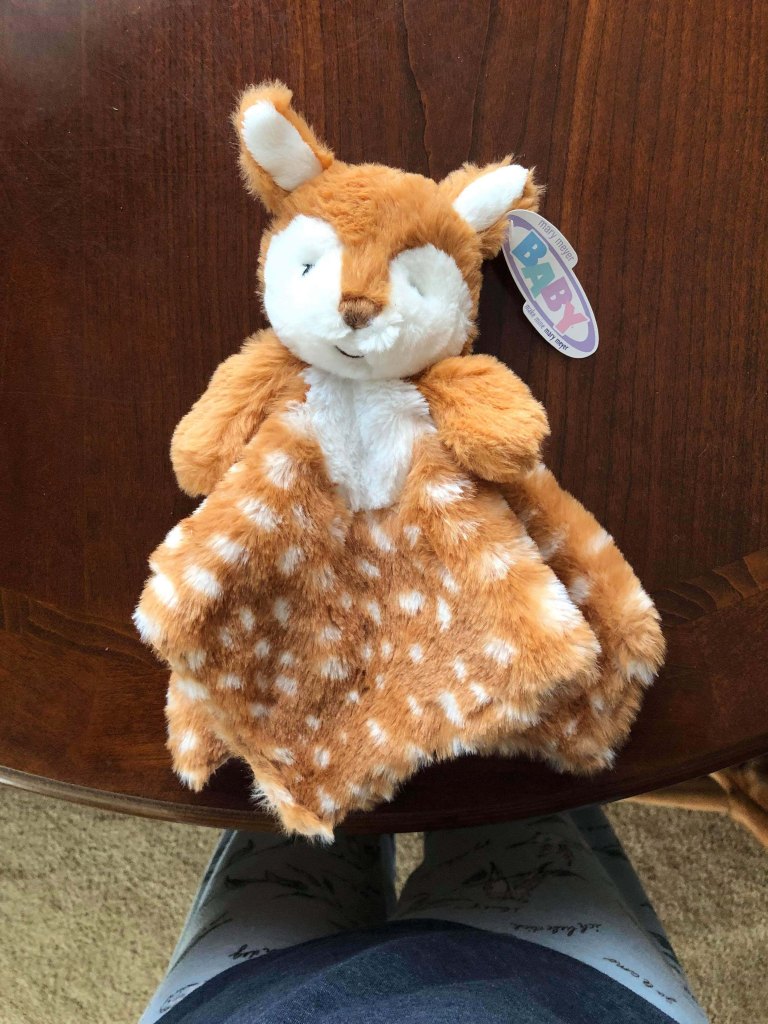 What else?  Well, I also remembered Kyrston’s monthly baby present and this time I got a deer blankie. Reasonably priced and super cute.  Speaking of that I wanted to personally thank whoever bought their RV hitch through our site.  That purchase earned us $41, which was amazing.  Next month I will be able to get her a Woodland Friends wall decal for the nursery and some super cute rattle socks!  These are small things, but she loves getting the little presents and it was a really bright spot in a stressful time.