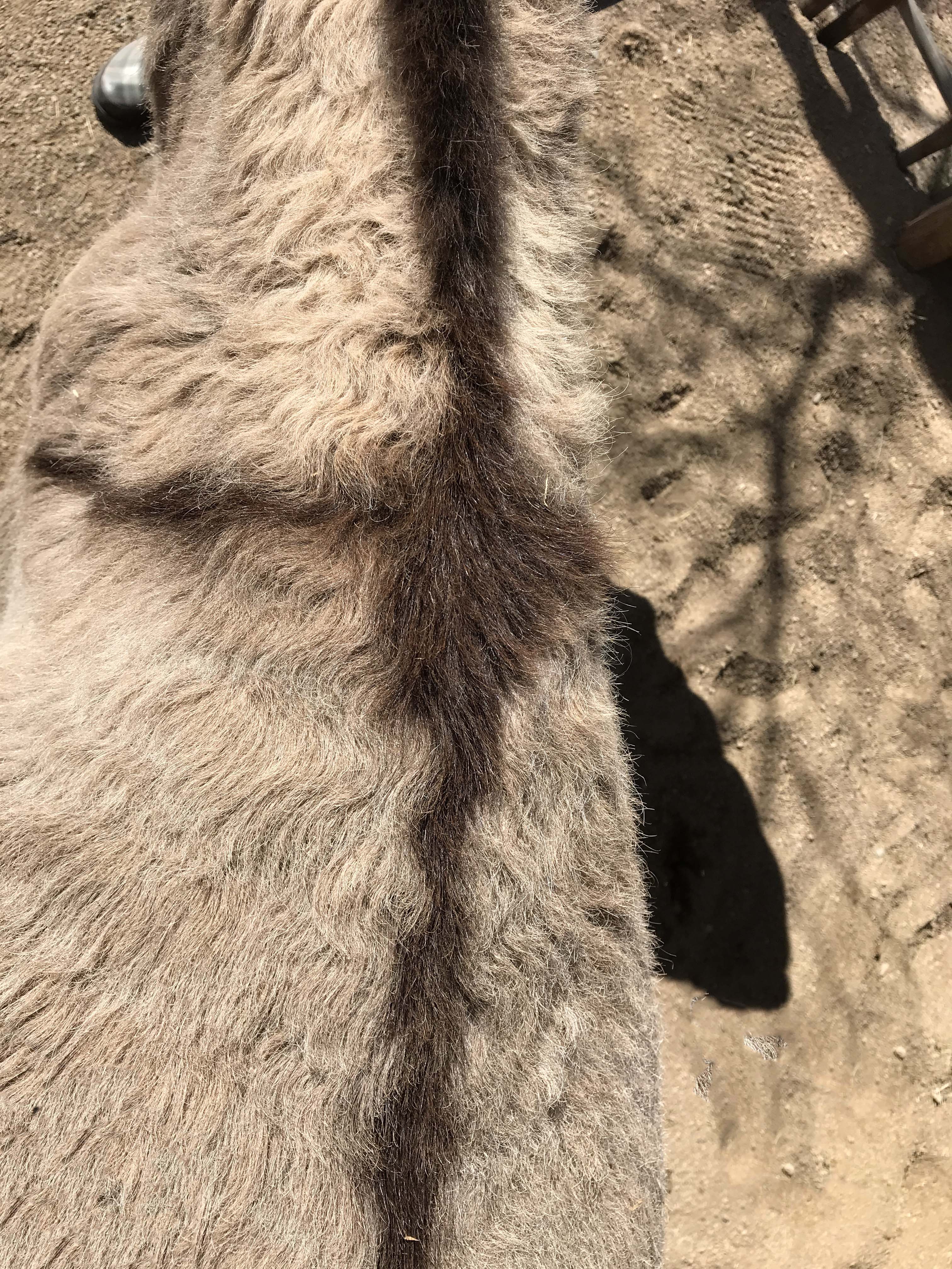 Some of the donkeys have this cross on their backs which some people believe shows the favor of God. A donkey carried Mary to Bethlehem.
