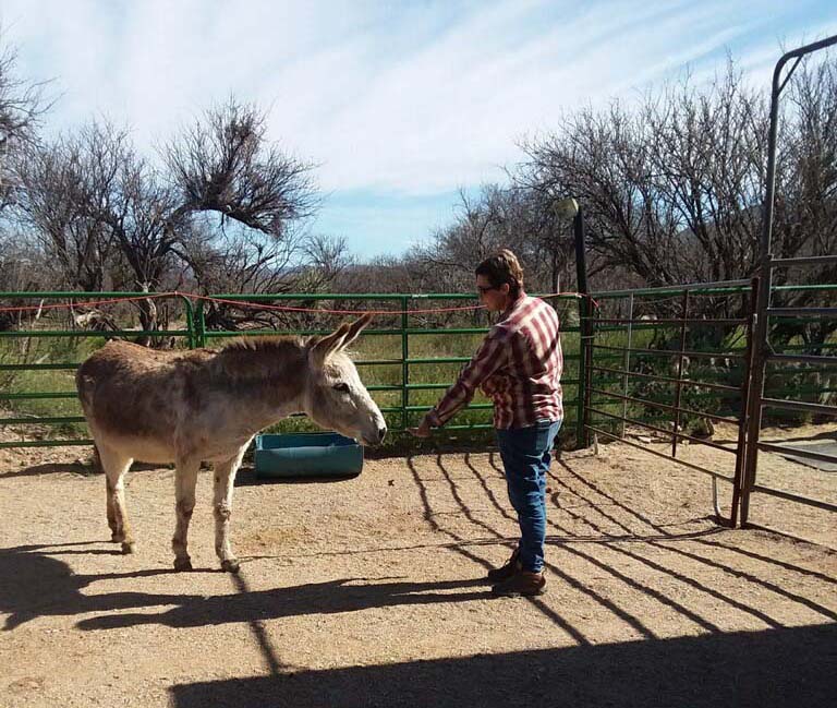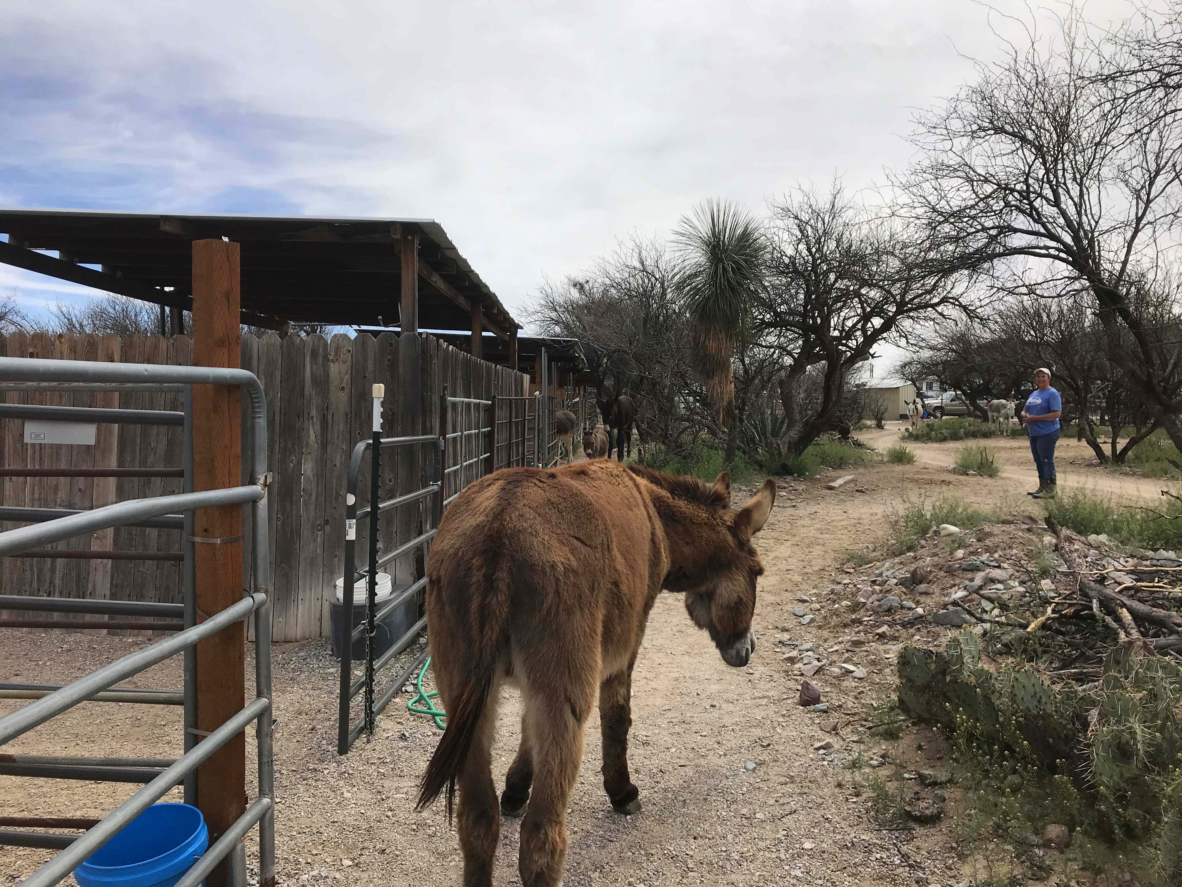 Volunteering is something we often talk about, but rarely have time for. This unfortunately is very similar to our old life, but on occasion as we travel we have the opportunity to do something really special. When Linda asked if I wanted to go the donkey rescue with her I happily agreed. Linda has always loved donkeys, and initially visited this rescue back in 2008. She decided to go back when they were in Benson for an extended period of time and soon found herself volunteering five days a week. Today was her last day with the donkeys before they moved out of the park and we both knew it would be an emotional day. I had been seeing pictures of her with the donkeys and Facebook and couldn’t wait to visit the Forever Home Donkey Rescue.