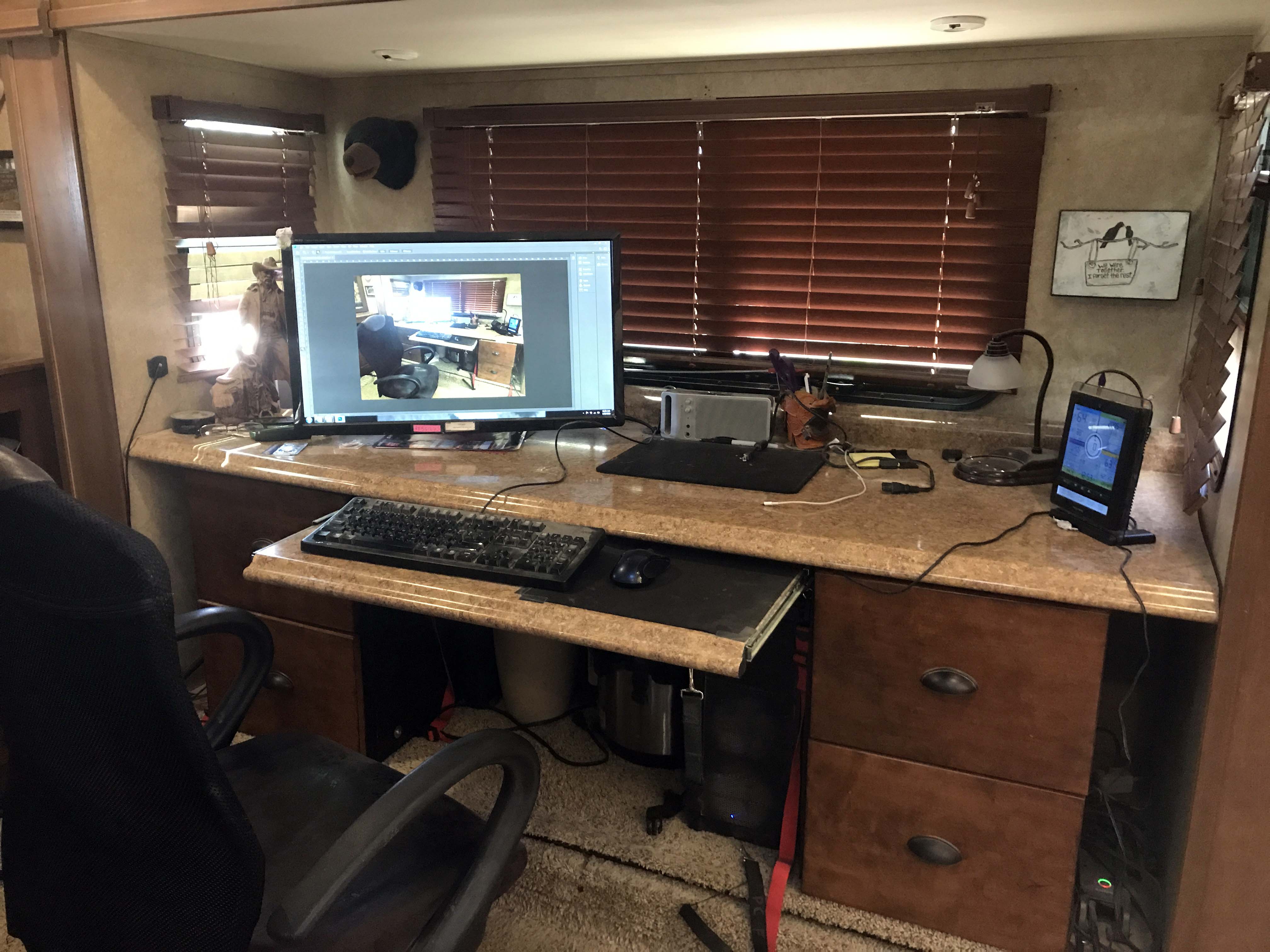 Our desk area which I love. Only downside is does get a little hot in that corner sometimes.