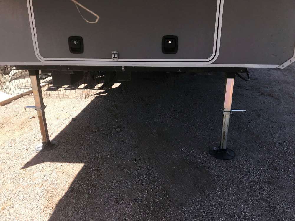 One of the biggest structural issues we had from the beginning was with the front jacks.  We are not alone in this because they are often designed poorly.  One of ours bent early on and Lee fought with that thing for years.  Ultimately it failed and he could have been seriously hurt in the process, and he finally replaced them.  They work much better now and he added a remote control system so he can lower and raise them while he is in the truck.  This makes hitching MUCH easier for him and is one of Lee’s favorite mods.  We are not alone in having front jacks fail by the way. We have two close friends who have had the same thing happen.  Thankfully in all cases there was no people or rig damage, but this is not an area of the RV to take lightly.