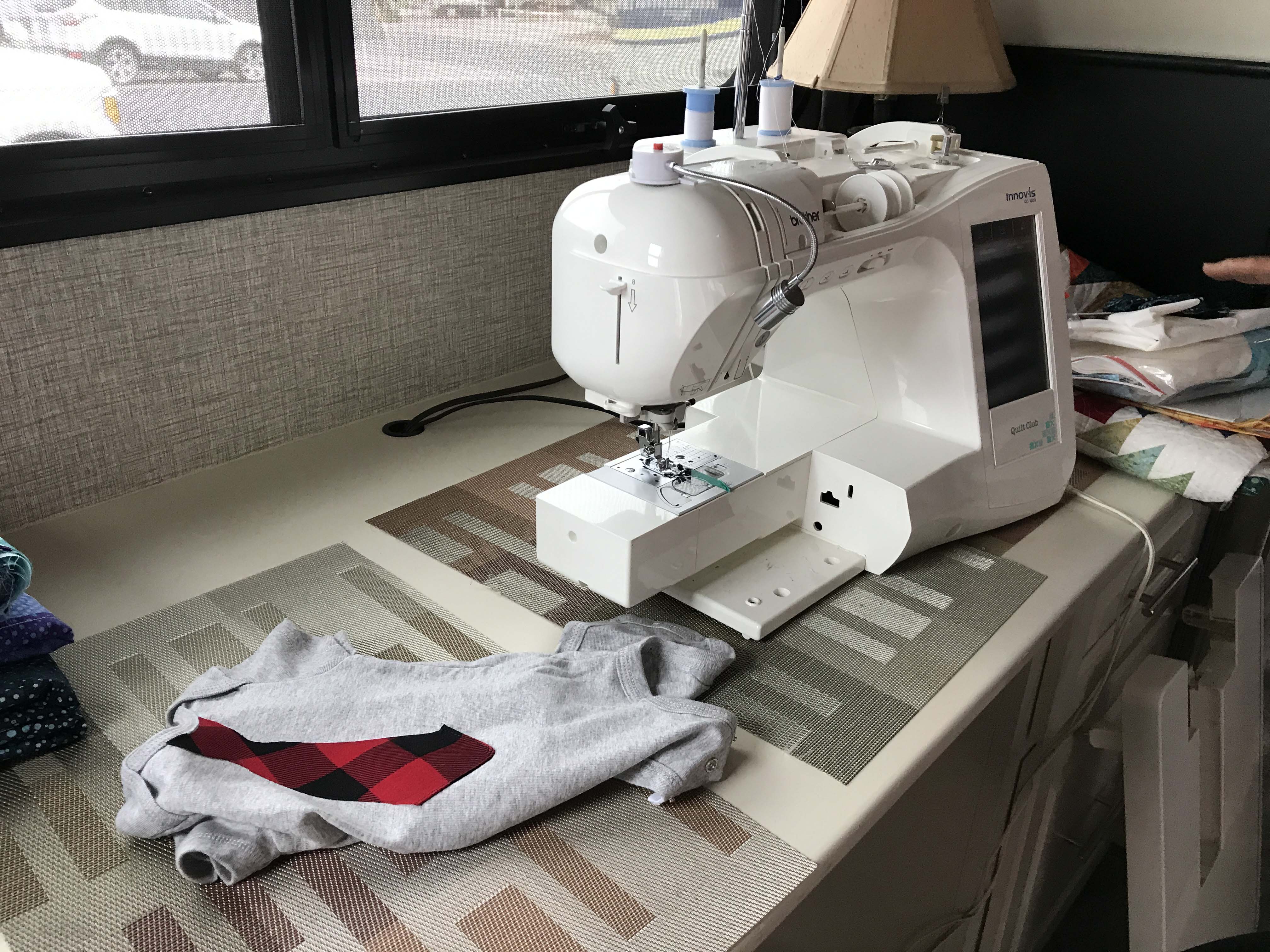 Armed with the onesies, I next needed to buy some supplies and visited Hobby Lobby, Jo-Ann’s Fabric, and Michael’s. I ended up getting supplies from every store and used 40% – 50% coupons that I found online at every one. All in I think I spent less than $75, which was pretty reasonable considering how many onesies I made. Once the supplies were gathered I decided to wait until I saw a friend of mine. Sue is an experienced quilter and has a high-end sewing machine. I also knew she would be supportive as I stumbled my way through the activity and could jump in if I had any major issues. I had decided to try multiple techniques all in one go, to see which were the easiest and which kept the cloth feeling soft.