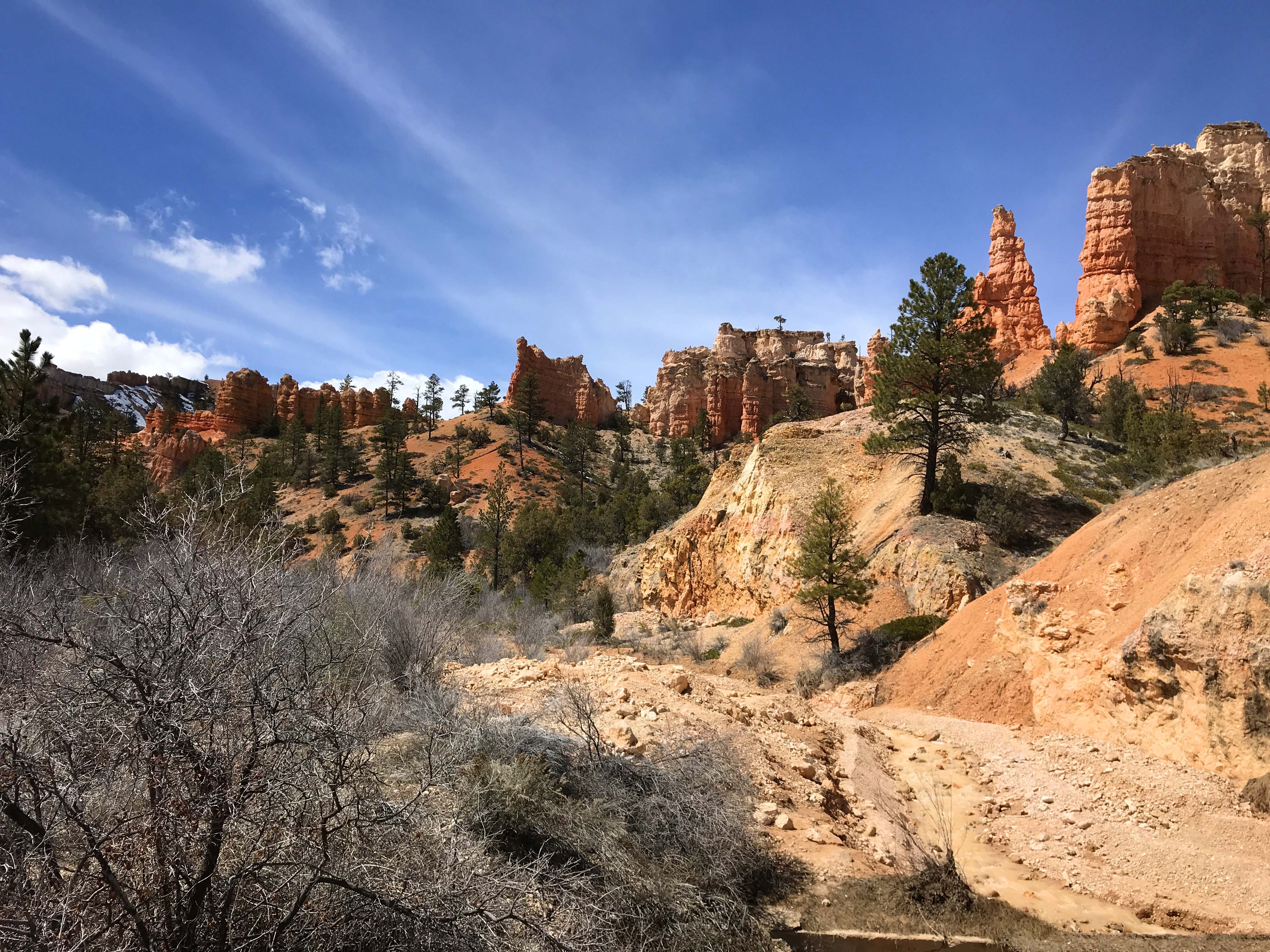 Because this was our first trip to Bryce, Lee and I were open to just about anything. Deb and Steve had been there 20 years before with their kids and had a list of things they would like to do to “fill in the gaps.” Unfortunately, many of the tougher trails were closed due to snow, but we discovered that a trail off the beaten track was open.