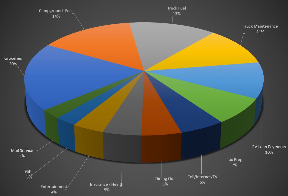 14 days at campgrounds, fees are reflected in the expenses for the month ($563)