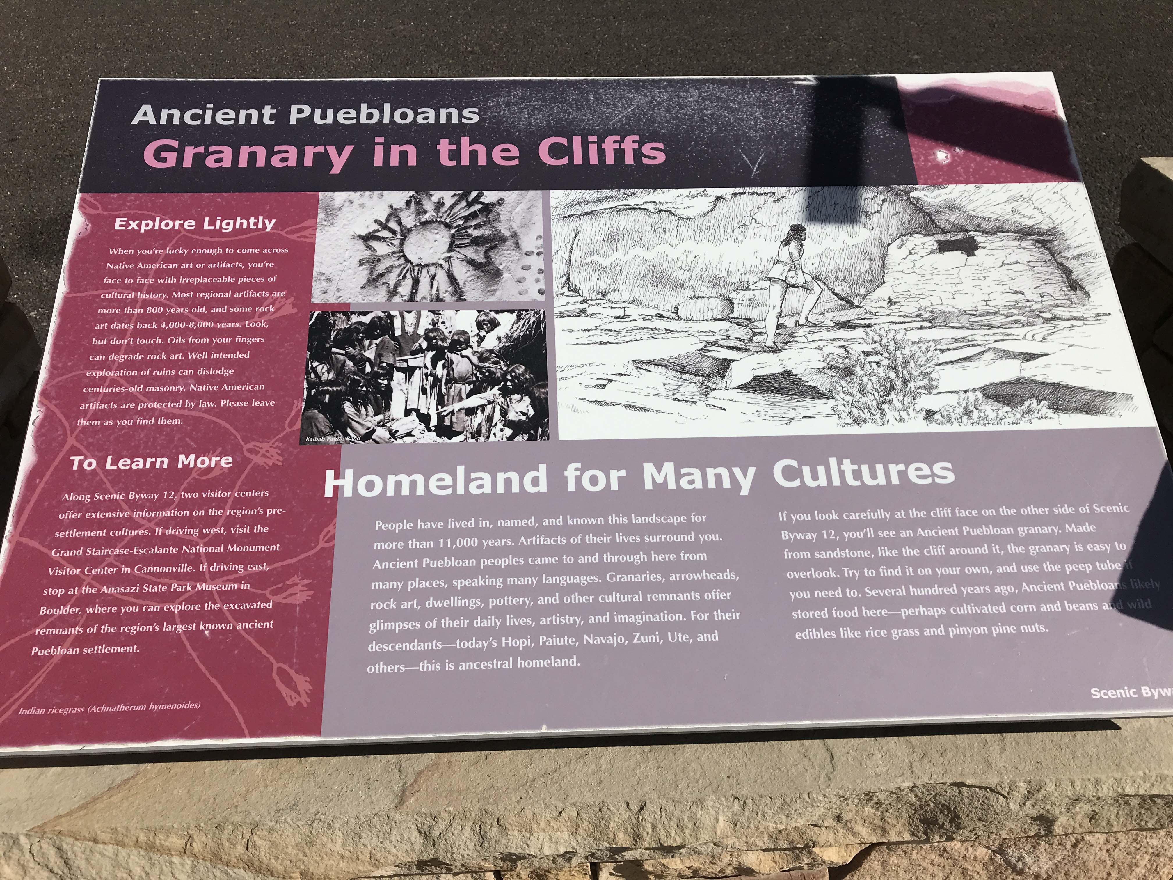 We also saw several ancient puebloan granaries. This cool marker had perfectly aligned pipes that acted sort of like scopes so you could find them.