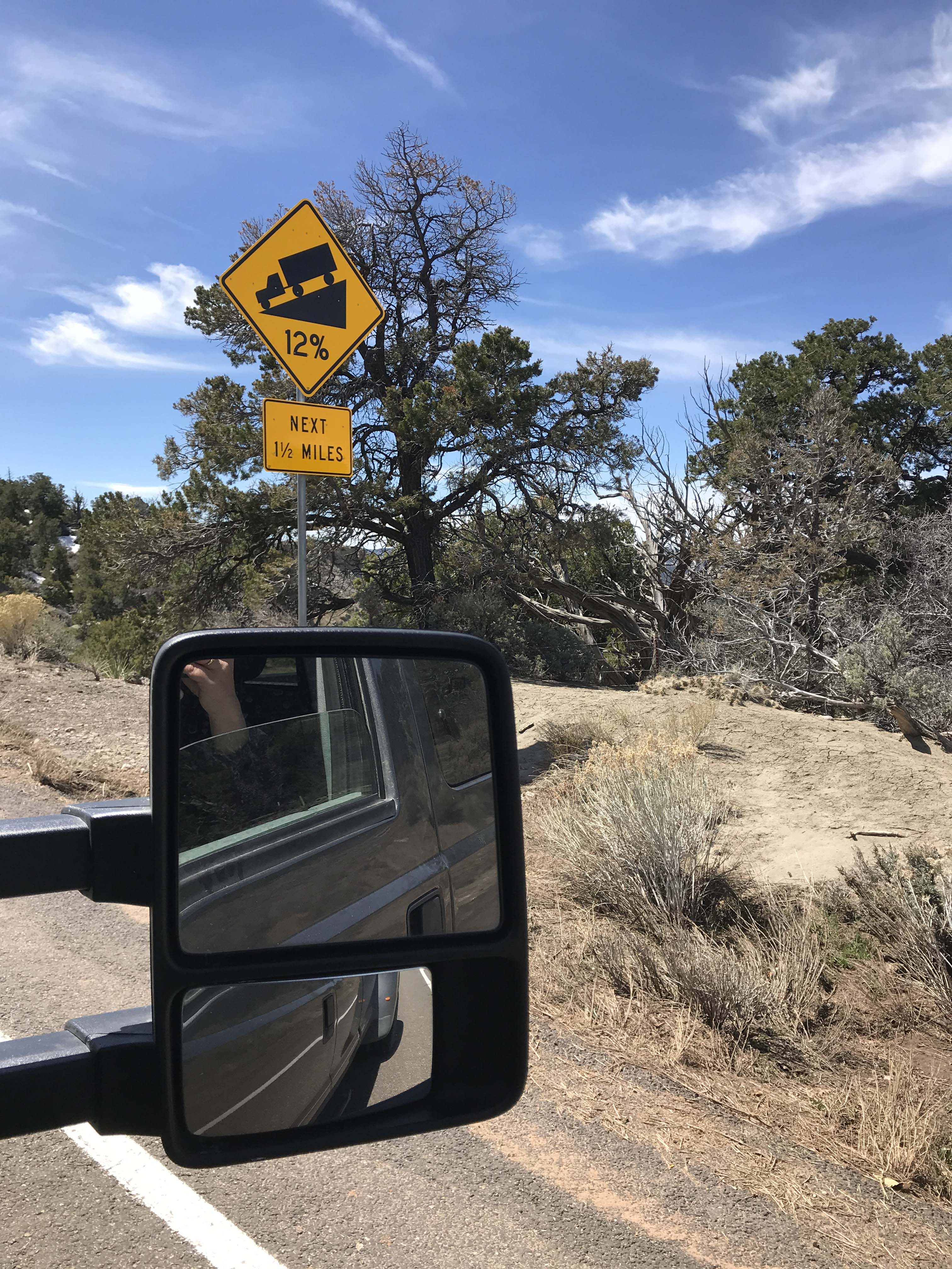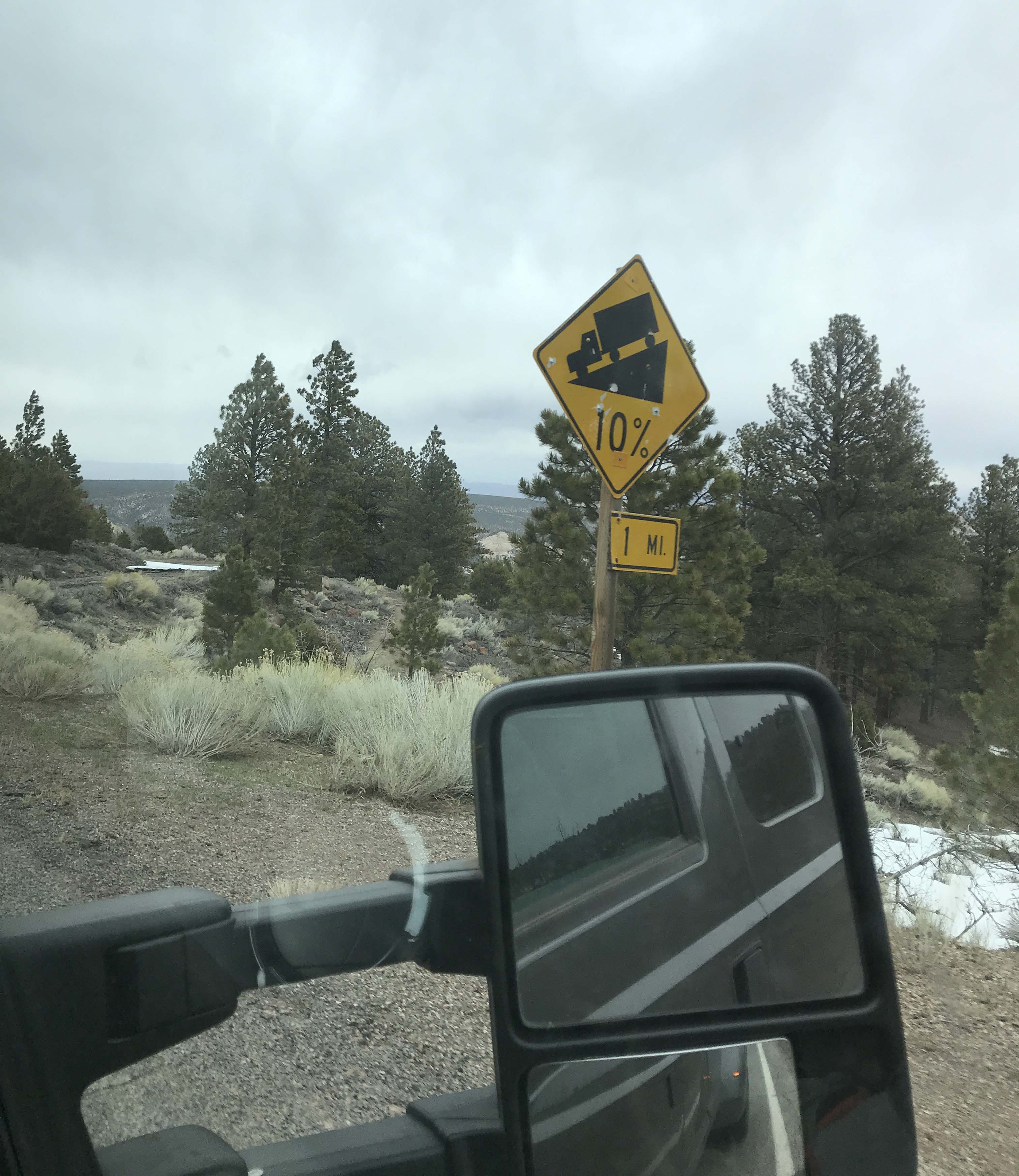 Now you may be thinking, I have handled grades before and I’m careful so it’s not that bad, and I agree…except here is what was at the end of those grades. None of them were straight down. Oh and the road during the Dixie National Forest section can get icy and on more than one occasion we experienced snow in April up there.