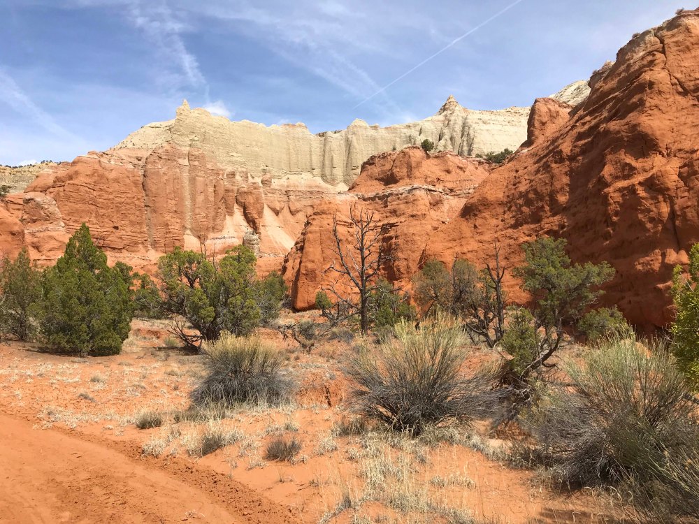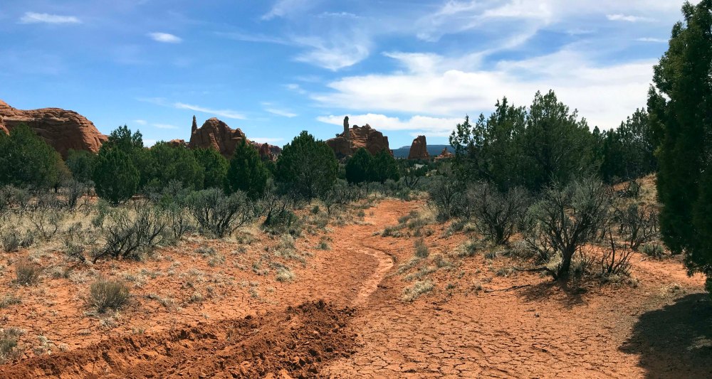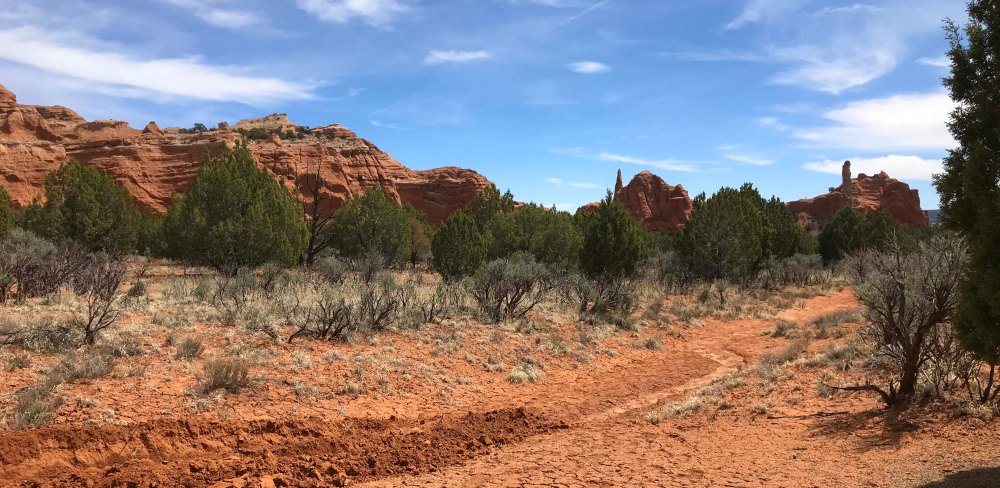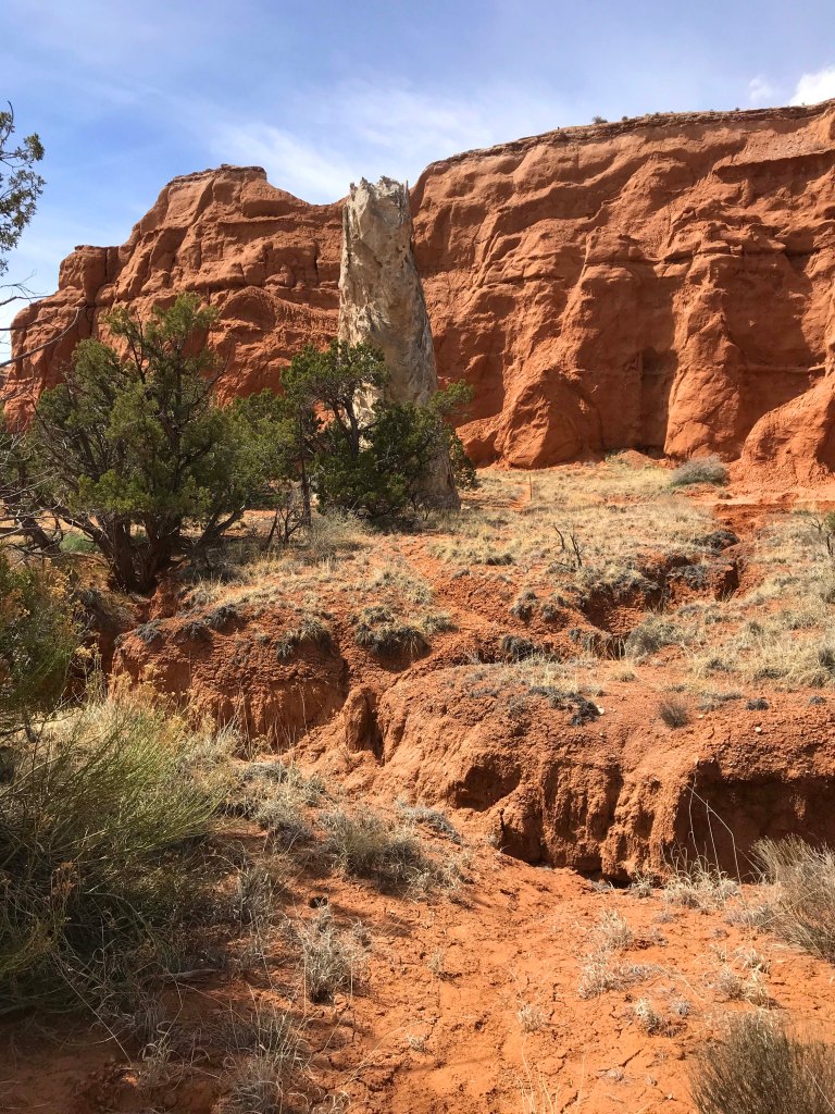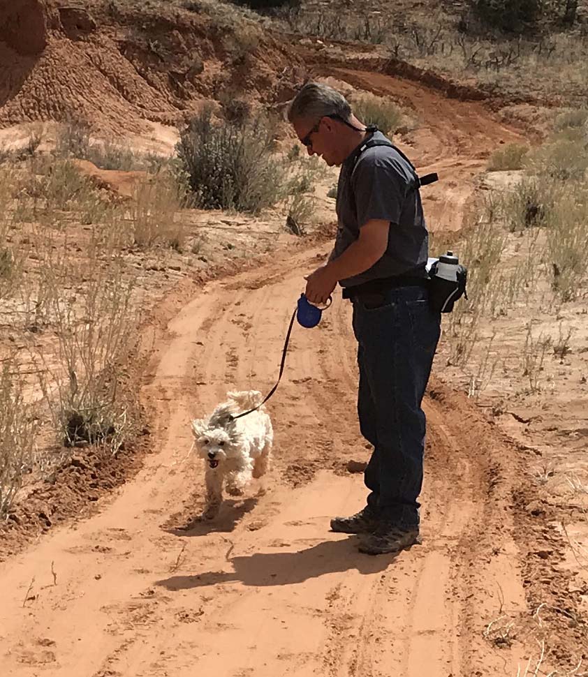 By the time lunch was over it was starting to get a little hot, so I decided on a 1.5 mile canyon floor hike. I definitely wanted something flat, plus I enjoy walking at the base of the canyons rather than the steep climbs to overlooks along the rim. I much prefer being “within the rocks” and all things being equal I’ll take a flat hike over one with elevation any day. We made sure we had plenty of water and were delighted to see that Jack’s water bottle fit perfectly in our Outdoor Mojave waist hiking packs. On really long trips we use our hydration packs but most hikes we are fine with the waist packs and I really prefer them. After trying numerous packs since becoming fulltimers, these are the first packs that don’t hurt my back.