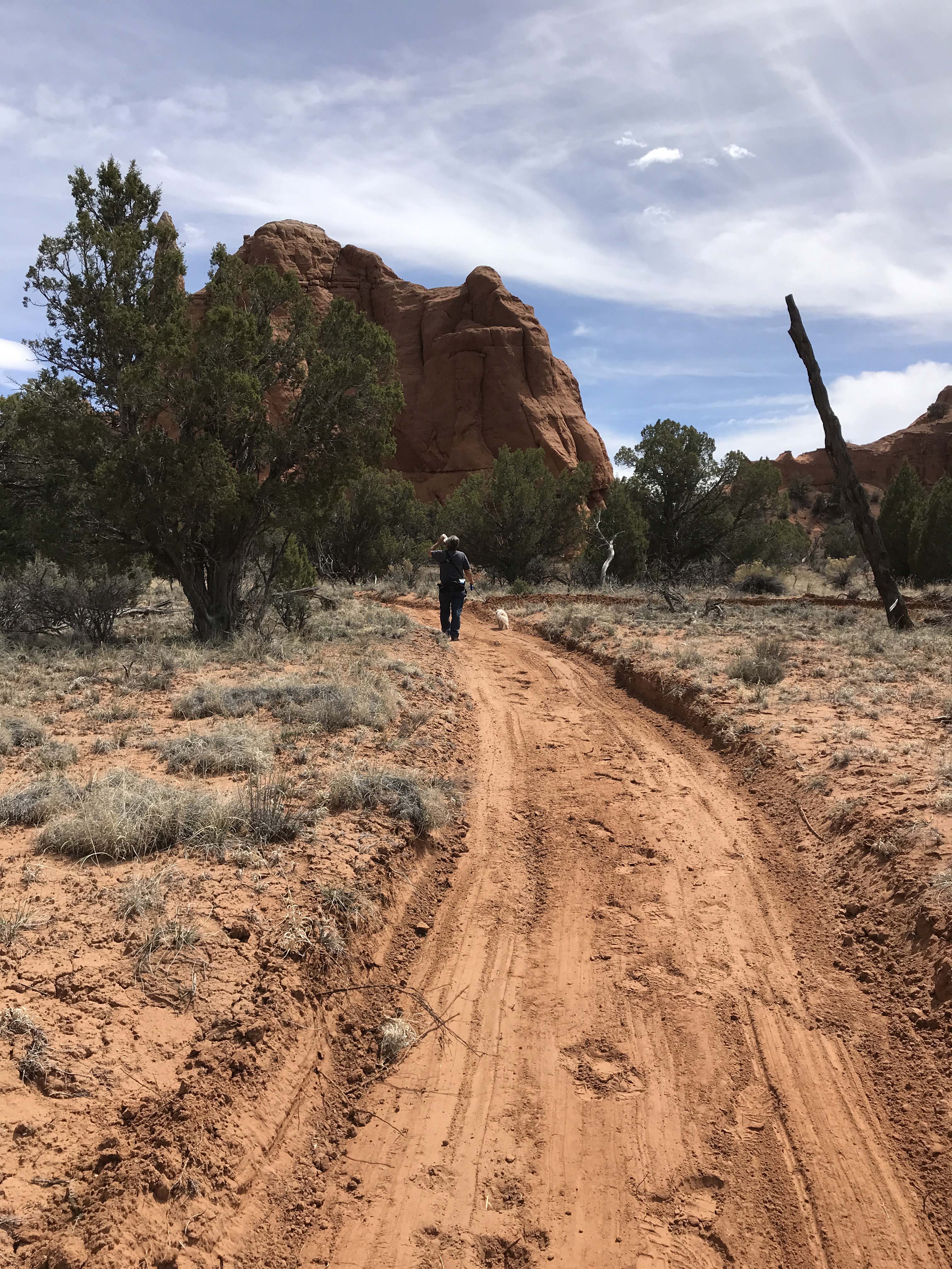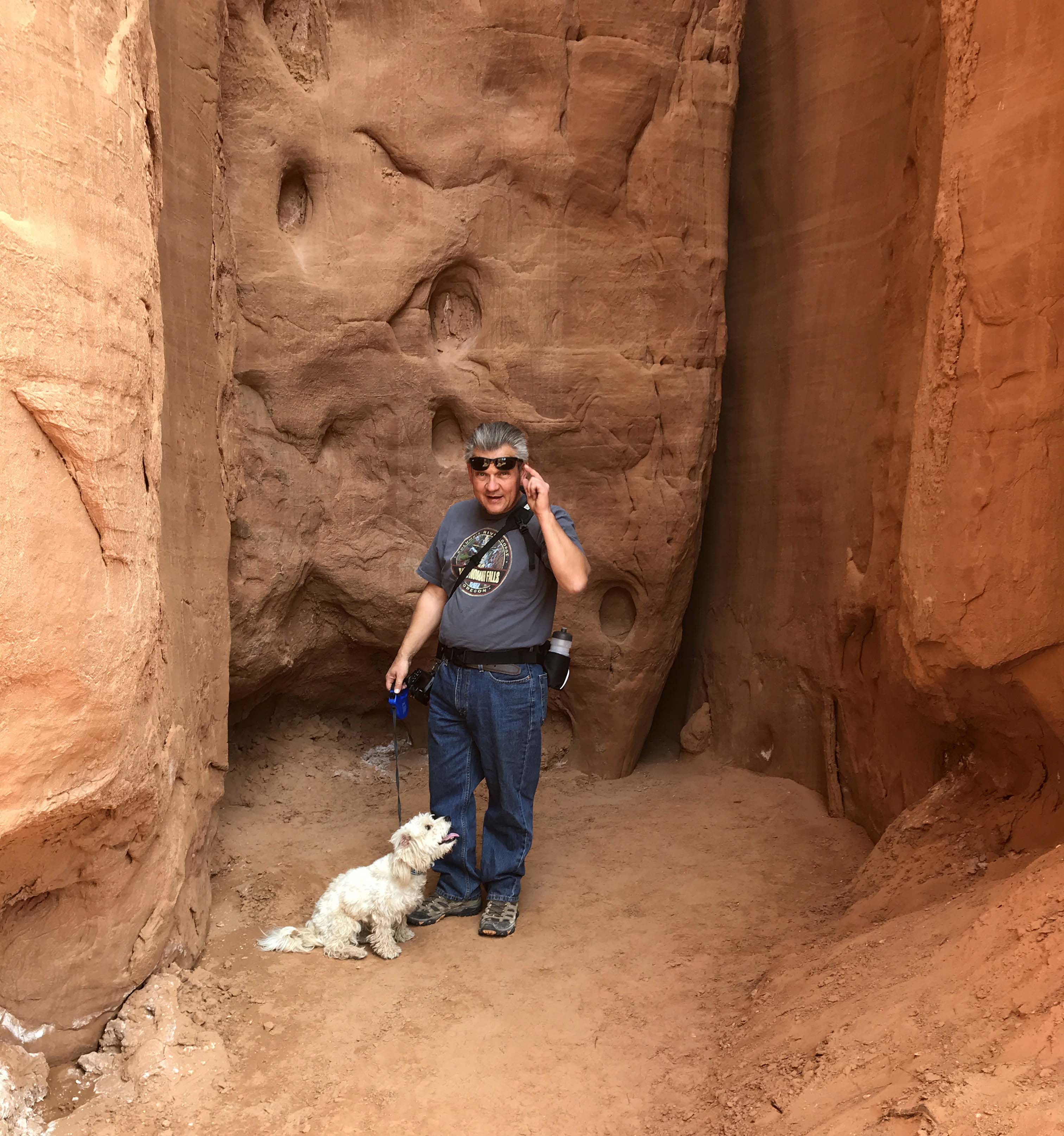 By the time lunch was over it was starting to get a little hot, so I decided on a 1.5 mile canyon floor hike. I definitely wanted something flat, plus I enjoy walking at the base of the canyons rather than the steep climbs to overlooks along the rim. I much prefer being “within the rocks” and all things being equal I’ll take a flat hike over one with elevation any day. We made sure we had plenty of water and were delighted to see that Jack’s water bottle fit perfectly in our Outdoor Mojave waist hiking packs. On really long trips we use our hydration packs but most hikes we are fine with the waist packs and I really prefer them. After trying numerous packs since becoming fulltimers, these are the first packs that don’t hurt my back.