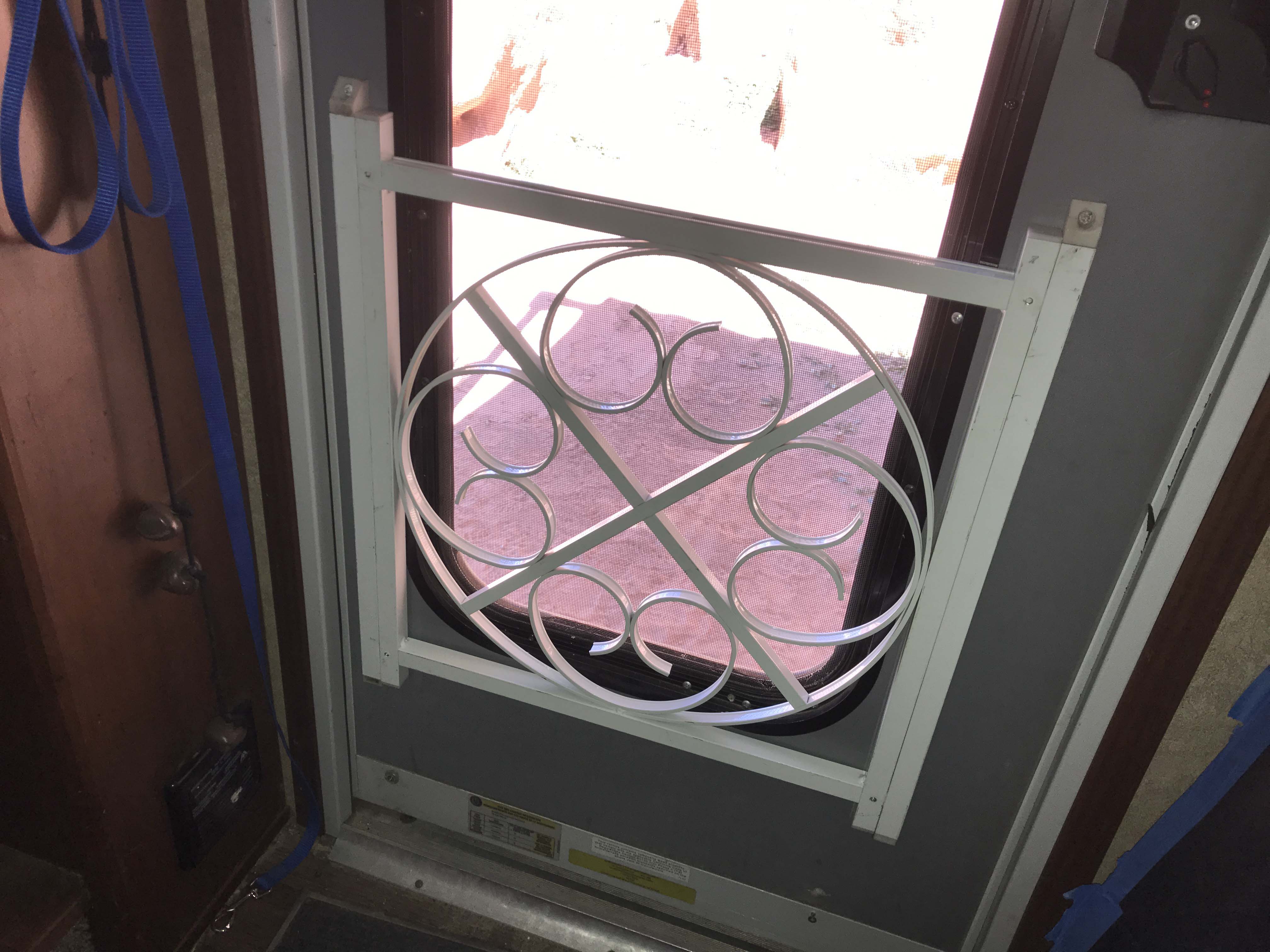 Steve gave us this door grill from his RV which he couldn’t use because he got new stairs. It was perfect for us because we need to stop Jack from scratching the screen.