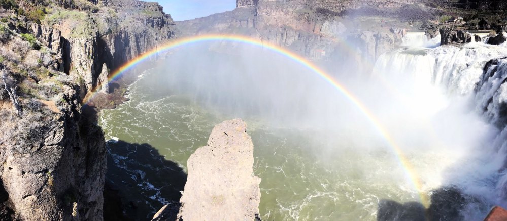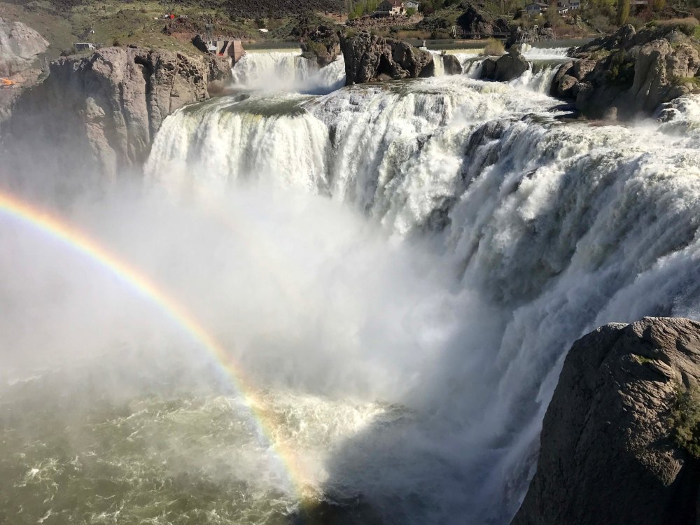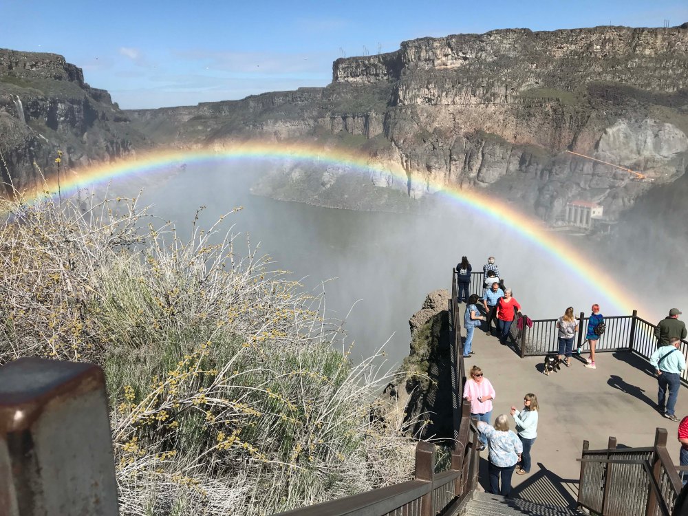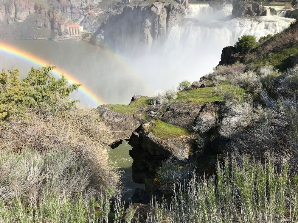 We were both surprised when we got to a small shack and learned their was a $5 day use fee to visit the falls. There was a viewing area up top that was free, but we paid the five dollars and headed down. It’s actually a really large park area, and even has its own snack stand. We got there and parked, surprised by how many people were visiting. Then we got our first proper look at the falls, and simply put, wow! It wasn’t the size of the falls, or the viewing platform which was also really nice. It was the absolutely perfect double rainbow that was at the base of the falls. You can just make out the second one above the first one, not as bright.