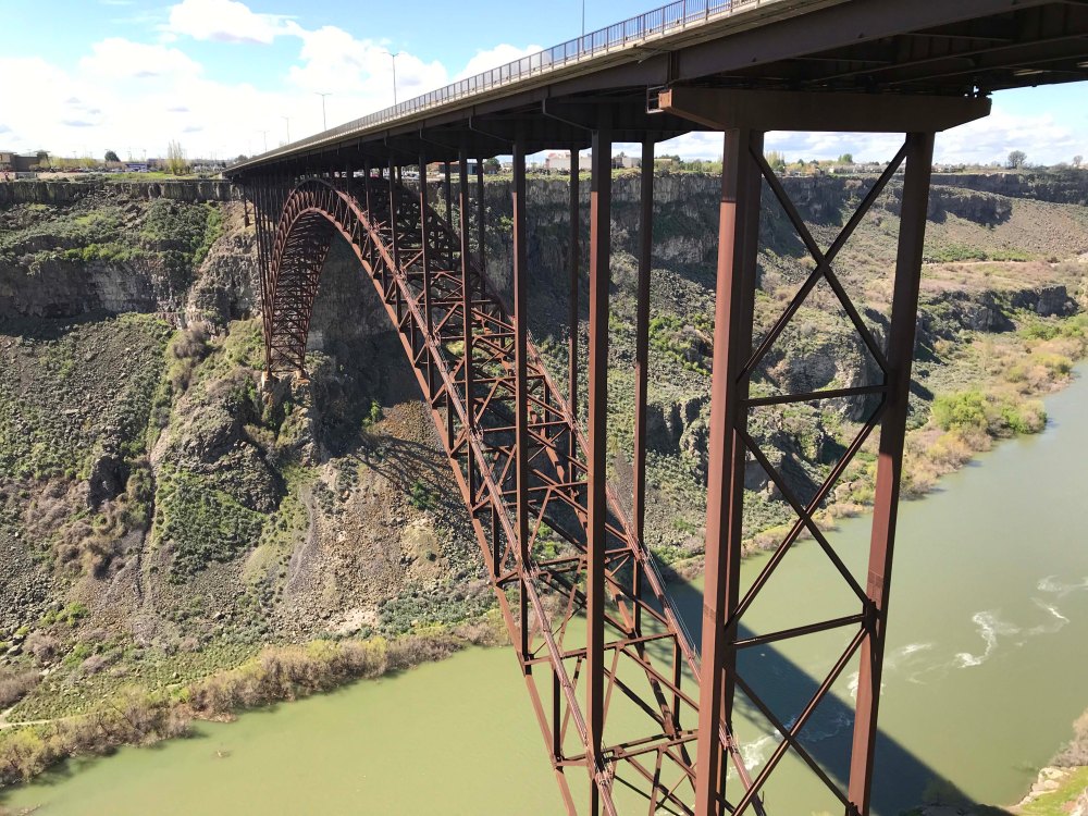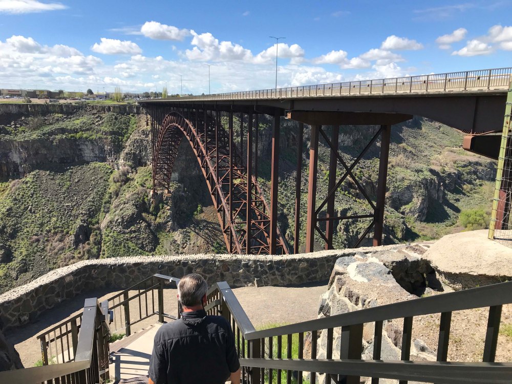 After the falls, we were both pretty hungry so we headed into Twin Falls to check out the town. Turns out it is a great little town, with all the conveniences and some uniquenesses that are all its own. For one thing this was the site of the famous Evil Knievel attempt to jump the snake river, and we found the bridge and walked to viewpoints from both sides.