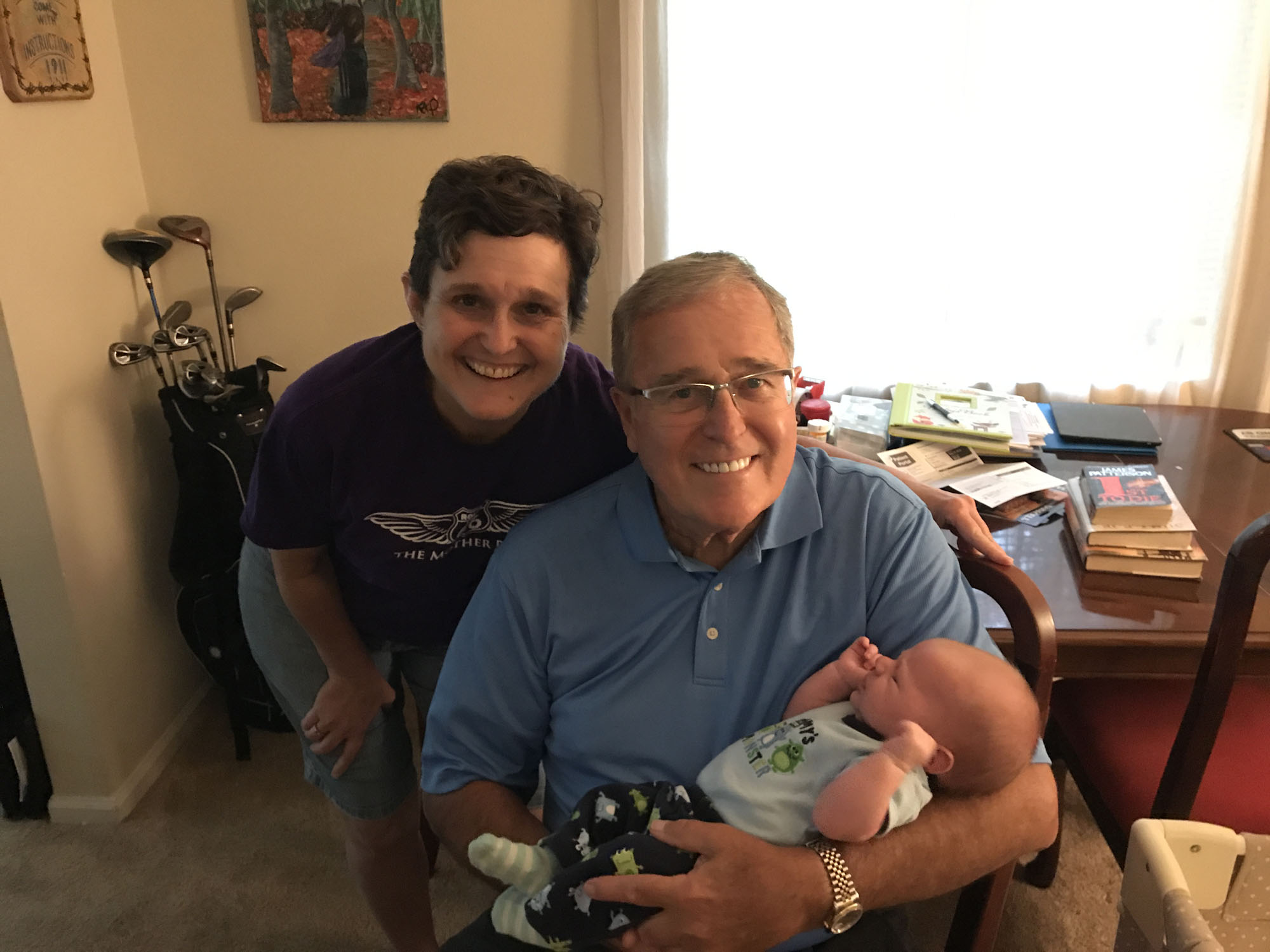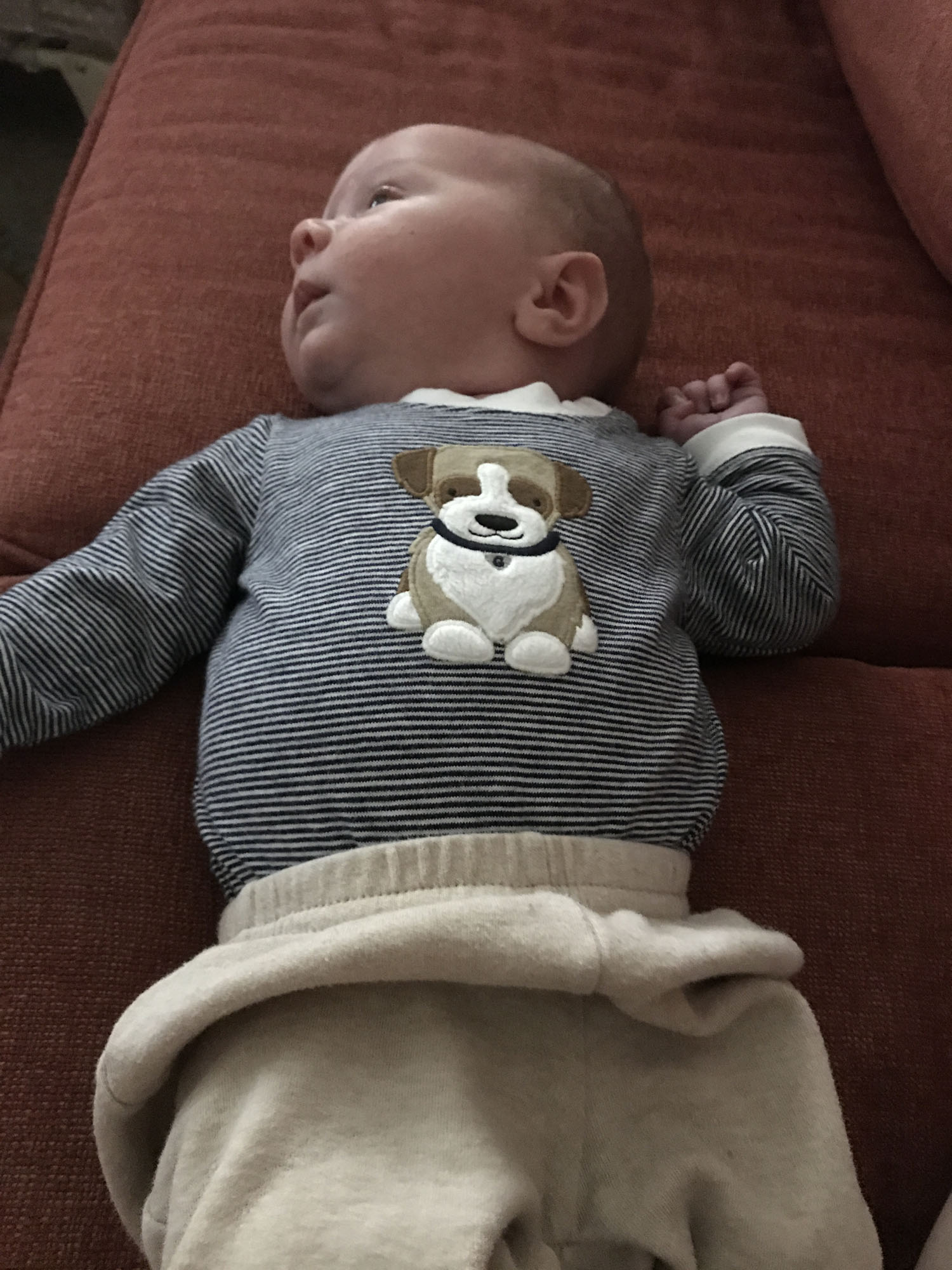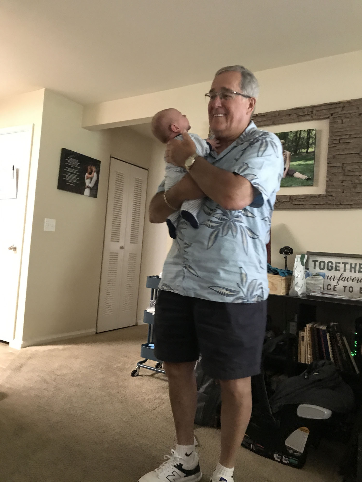 This was my absolute favorite moment. Oliver and Dad were looking intently at each other and then Oliver threw up all over dad. It was priceless!! Dad handled it very well.