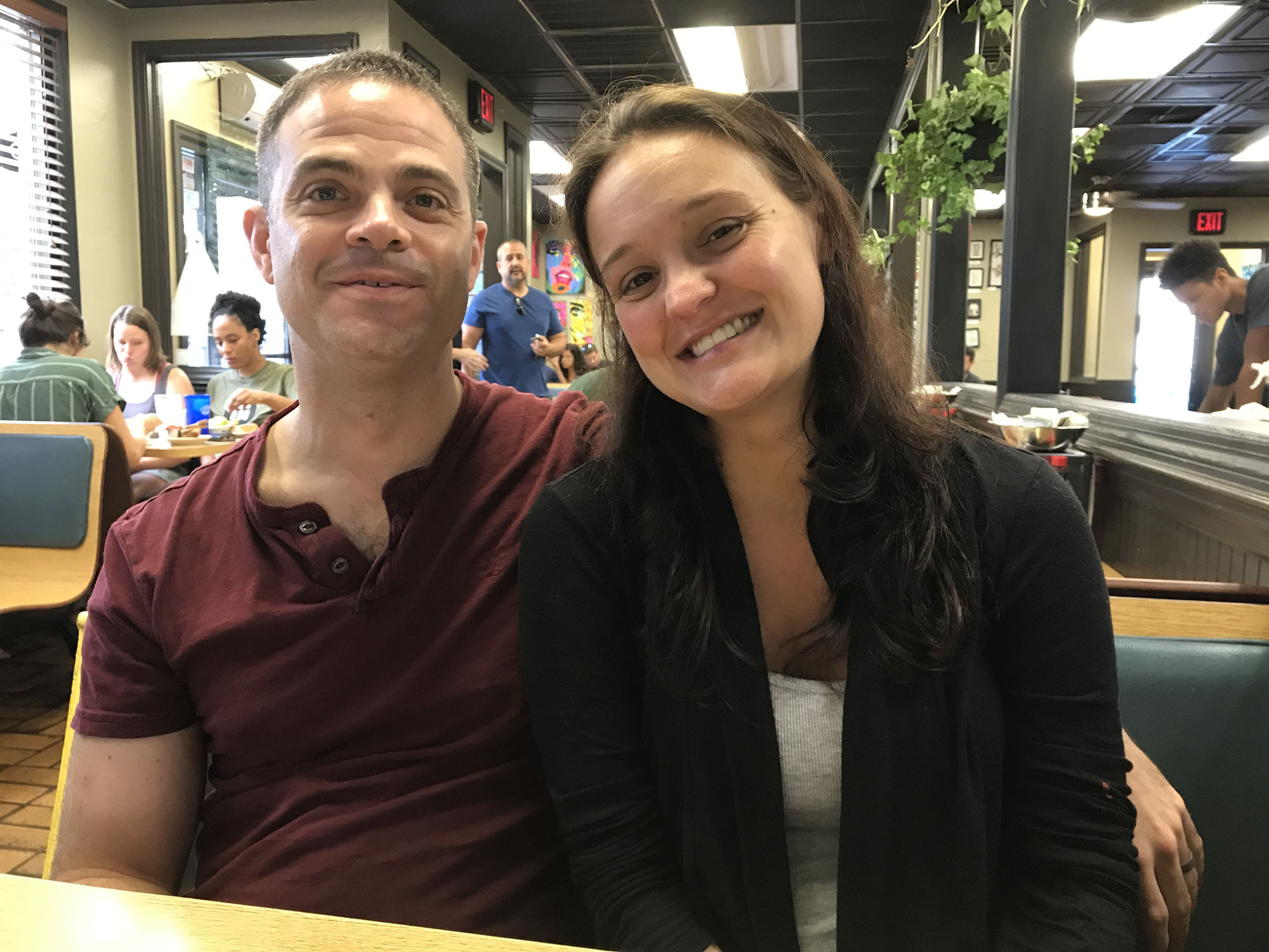 Jeremey greeting Denise their favorite waitress