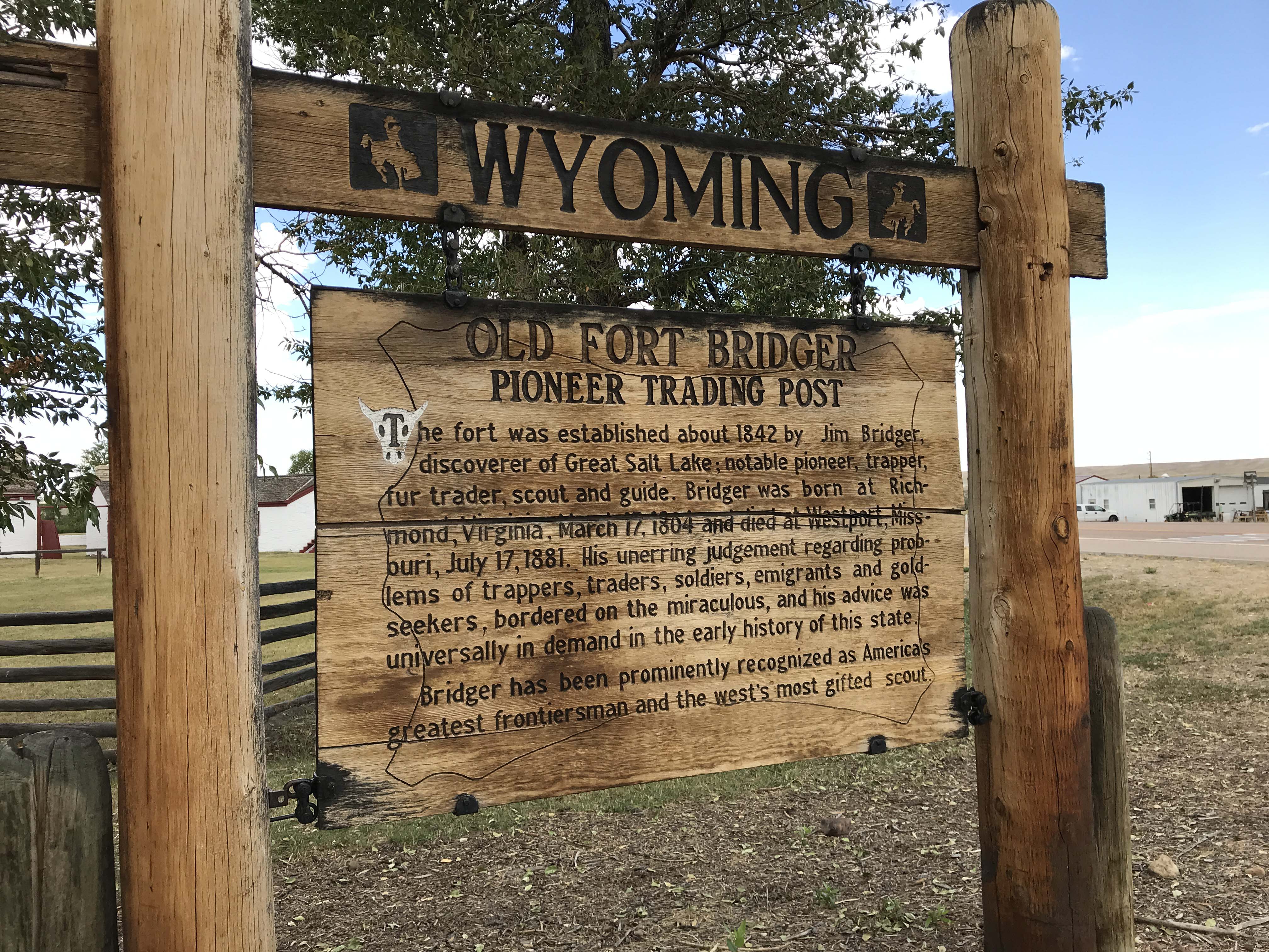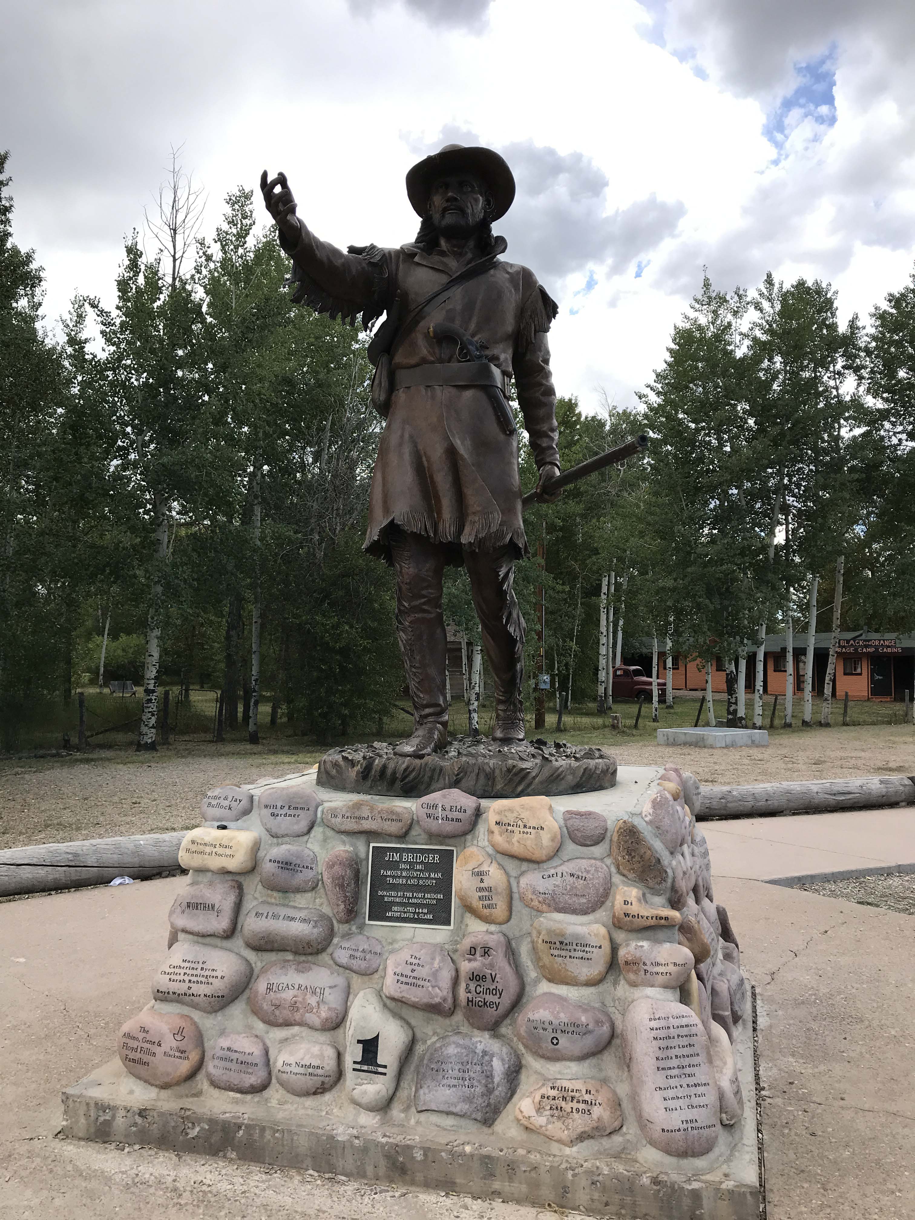 Part of the problem with Roadside America is you don’t know if there is parking for an RV, so I had to look the address up in google maps and do a satellite view to see if there was a place to park. It looked like there was a big parking lot close by, so we pulled off the highway and drove a few miles into Fort Bridger to see the statue. Now that’s a lot of work just to see a statue, but if you don’t ever get off the interstate you never see anything. And sometimes it turns into an amazing surprise which is exactly what happened to us.