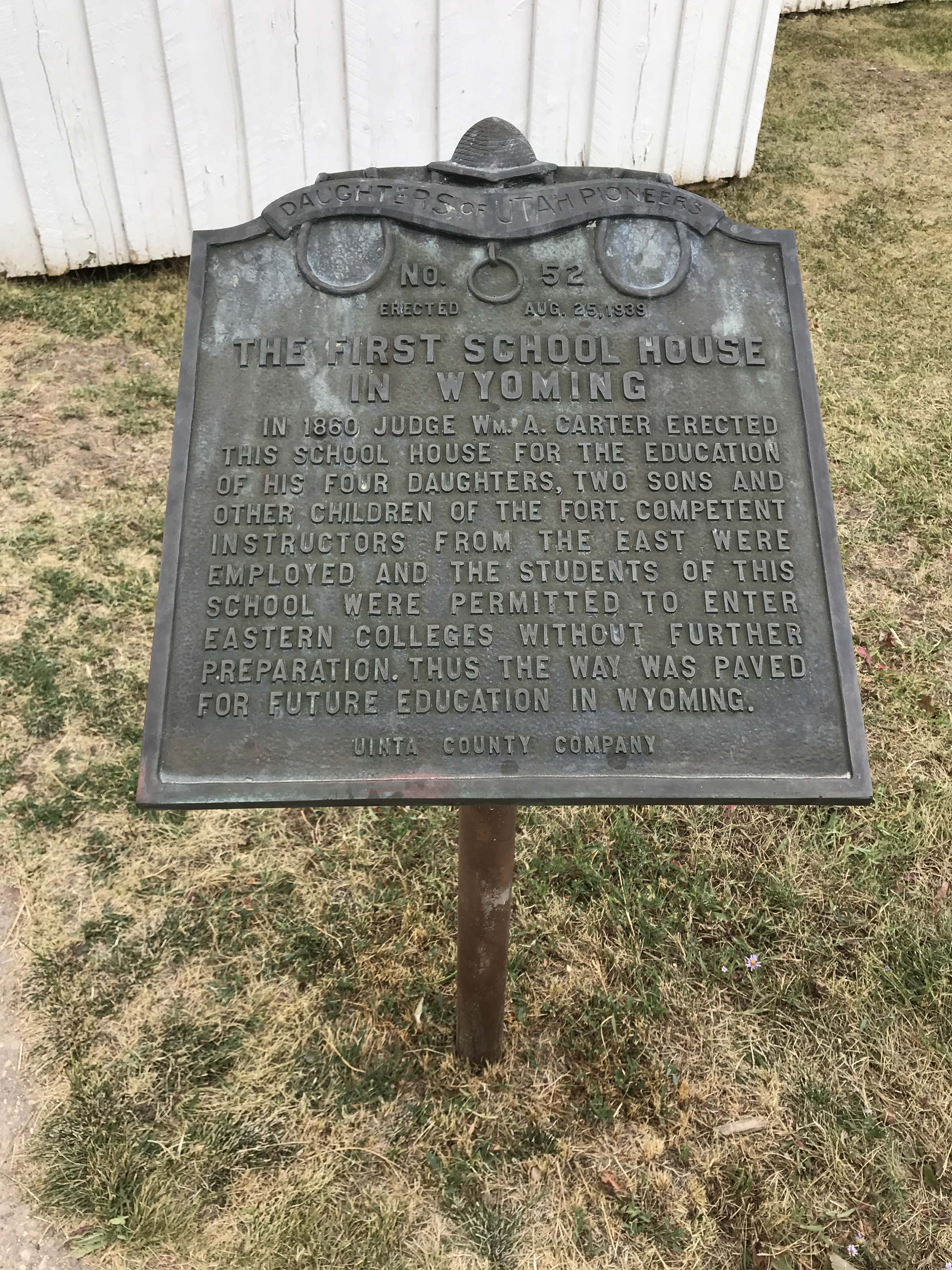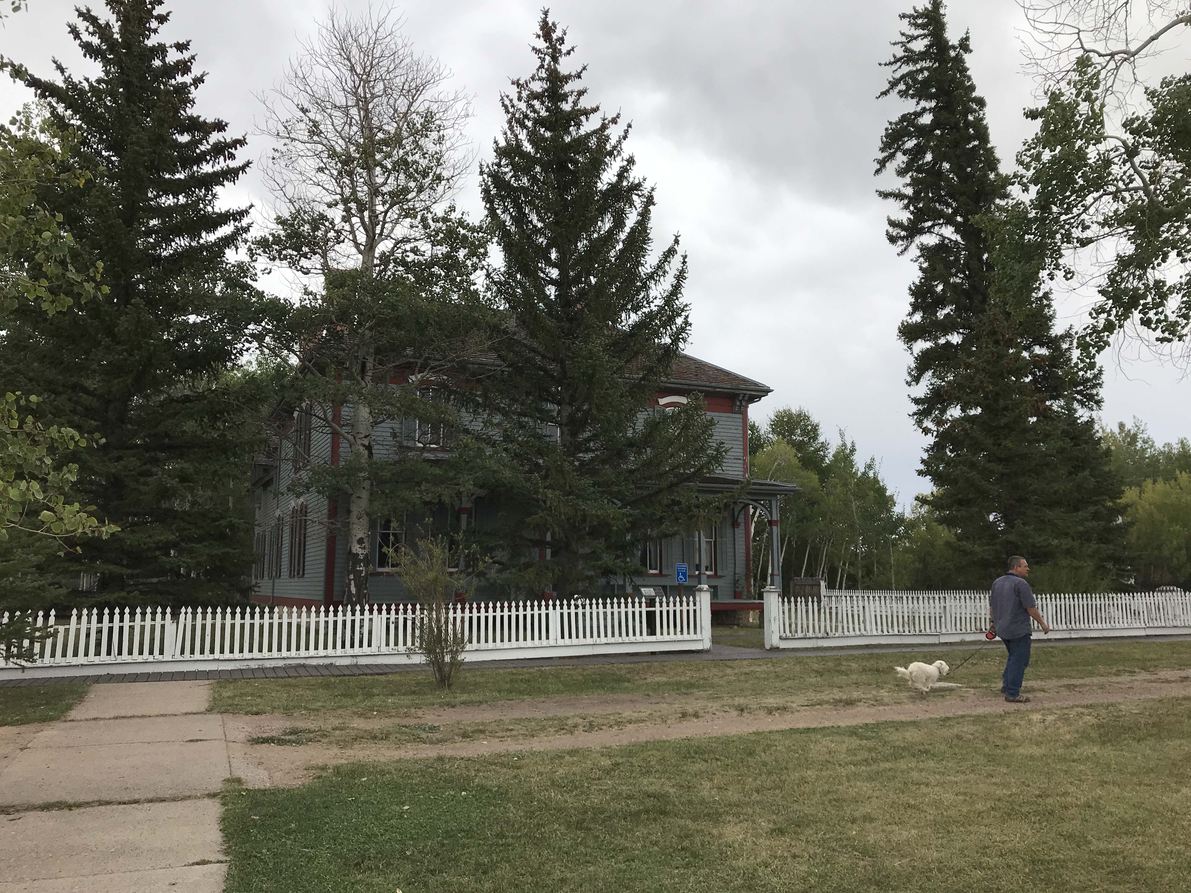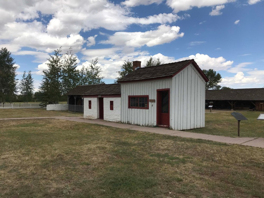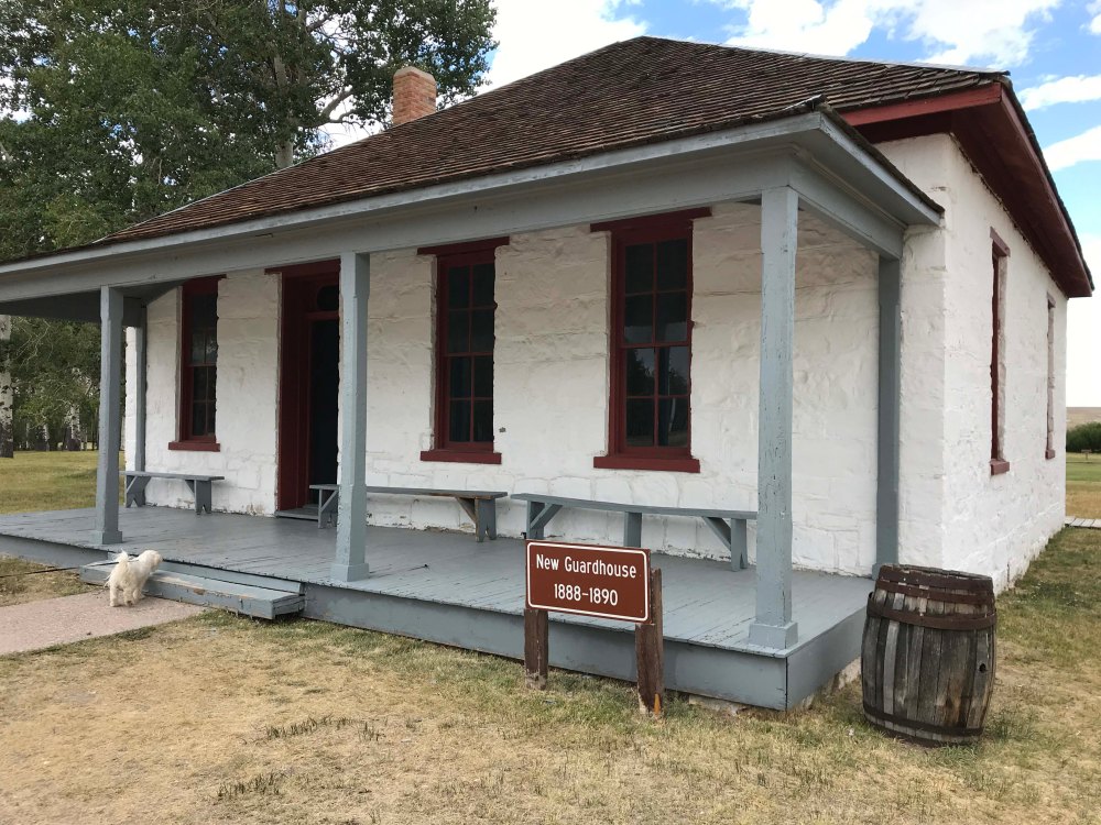 As we were pulling into the parking lot and finding a spot we noticed there were tons of building all around. There was also a picnic area and restrooms and we were both confused by what we were looking at. Turns out the statue is in front of the Fort Bridger Historic site which is a huge historical park. It cost $5 per person to get in but the park was packed full of buildings (36 in all) and was well worth the fee. It was also dog friendly, and we spent well over two hours walking through the park and looking at all the buildings. But first of course we saw the statue.
