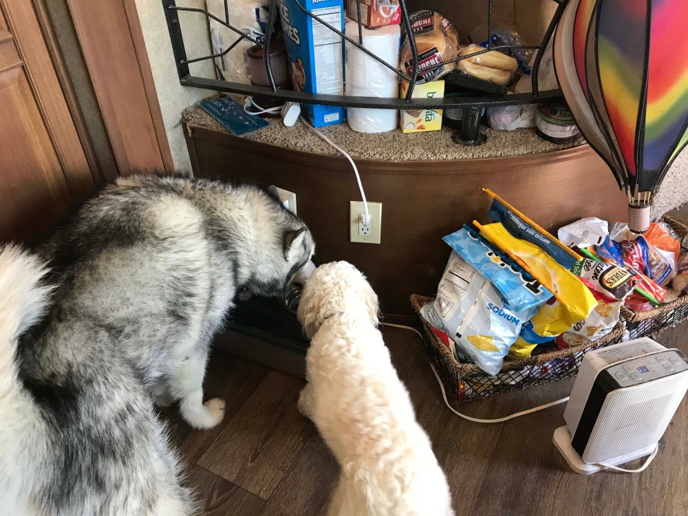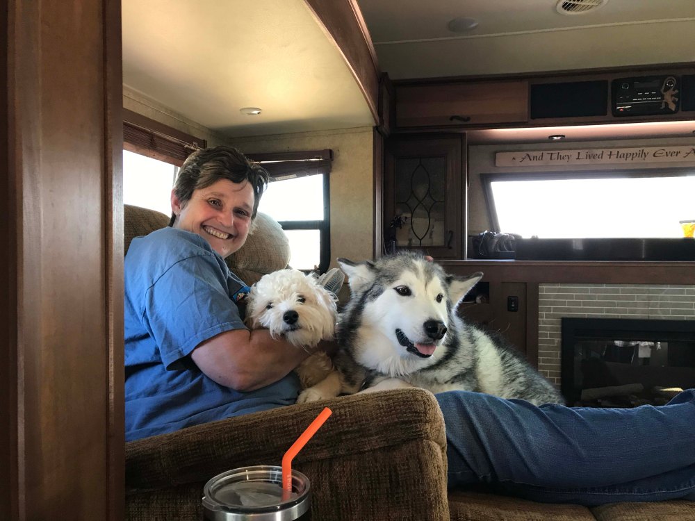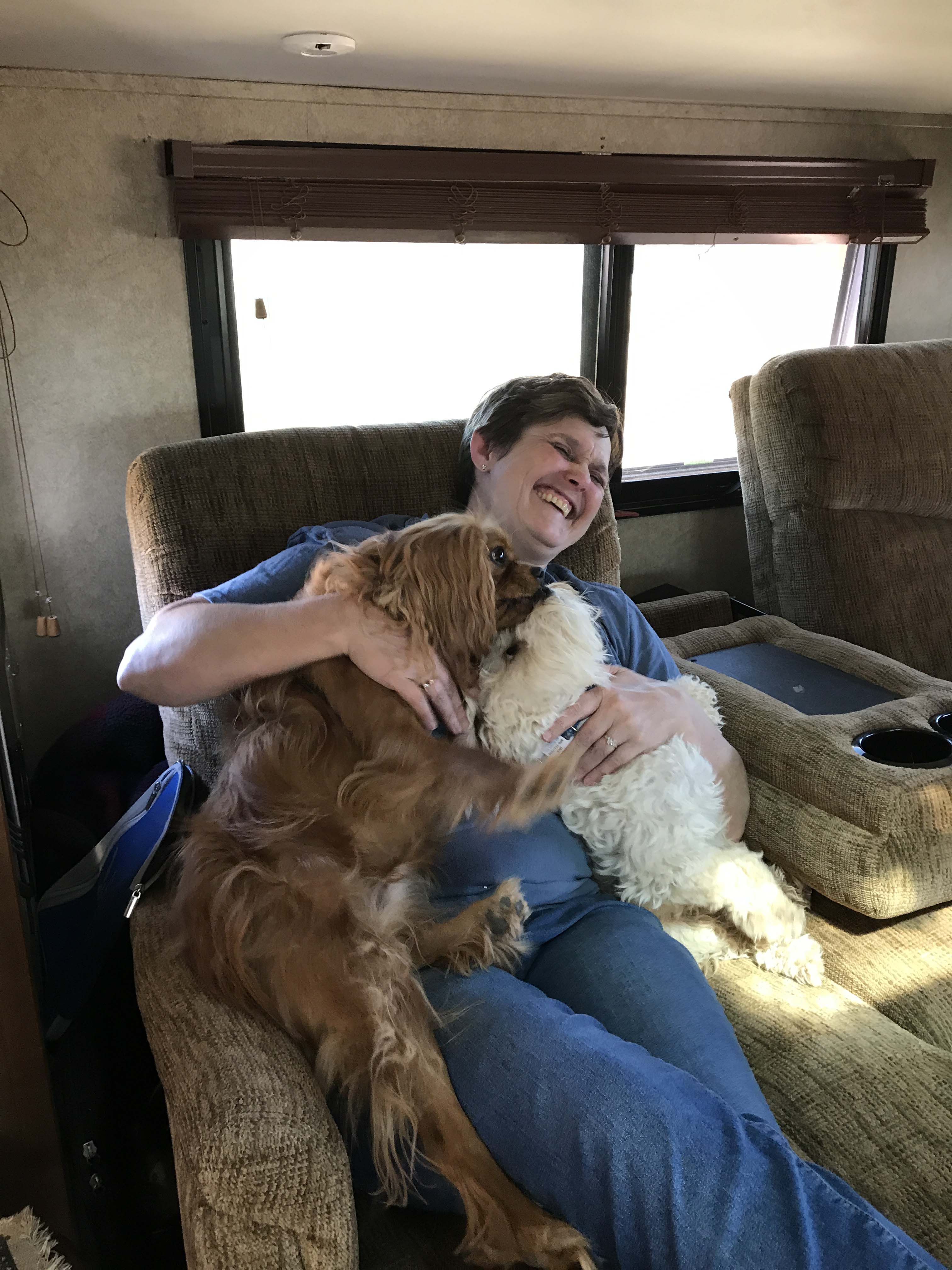 It absolutely poured that night, which made us a little nevous because the campsites were dirt and gravel.  It turned out to be just fine though and the water dried almost completely the next day which was again nice because Jo came to visit with her dogs Peyton and Sammy.
