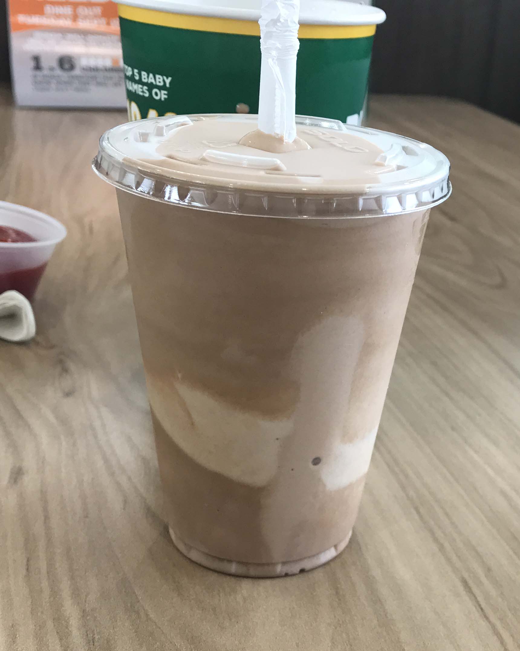 There were some really unique things about the menu. First they had mini shakes for $1, which were delicious and the perfect size. Next if you can’t decide between onion rings or fries you can order a combination for the same price called frings. Loved that!! Finally Lee got the sandwich and said it was delicious!! It was like shepherds pie in a bun and he was a big fan!!