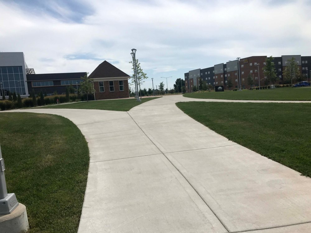 Unfortunately using satellite images isn’t perfect because it turned out that the parking lot was near full with student parking. That was not something I counted on, but Lee found a way to make it work, although unfortunately I couldn’t recommend the stop for bigger rigs. We just got really lucky finding several spots together we could use. In the picture below you can see us parked in a lot that just happened to have an outside row that was mostly empty.