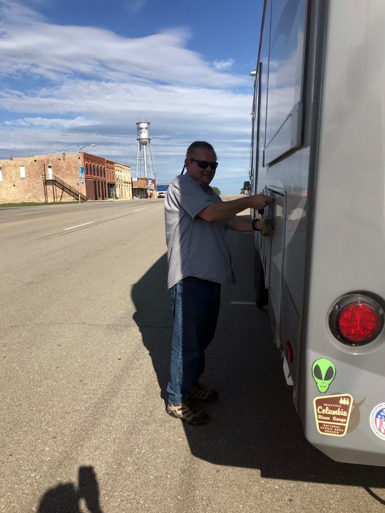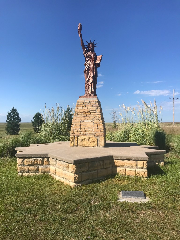 After the Home on the Range stop we were headed towards our main goal, but along the way, just a few miles farther down the road, was yet another cool thing to stop and see! Back in 1950, for their 50th anniversary the Boy Scouts of America decided to put miniature statues of liberty all over the country. There are over 200, and of those 25 are in Kansas alone. Since it’s incredibly easy to stop at, we decided to grab a few pictures. As you can see, the spur road is plenty wide and long enough for LOTS of big rigs.