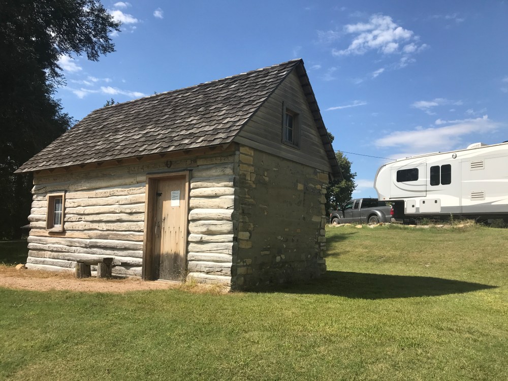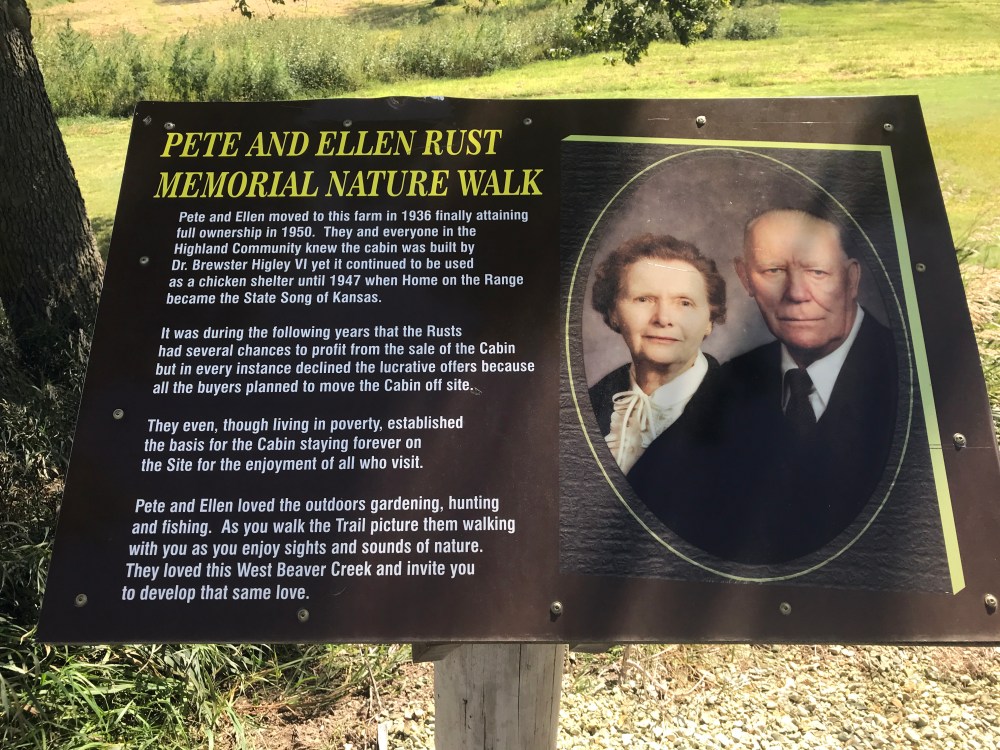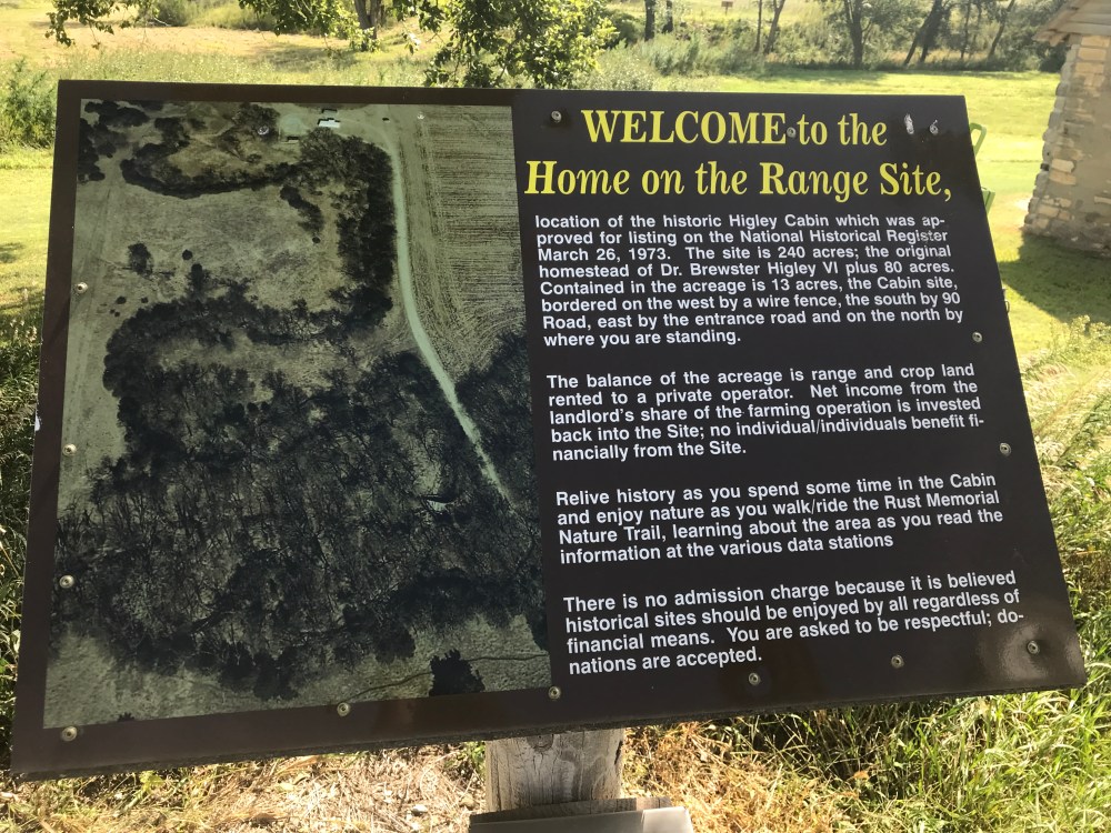The first stop was the small cabin where the creator of Home on the Range “the Kansas State song” lived. He actually wrote the song when he was living in a hole in the ground, but built the cabin the next year. To get there we had to drive down a long gravel road and I’ll be honest I was pretty nervous. You couldn’t see the site from the road before committing to the turn. (This picture is what you see as you approach the site. Not much info to go on. The turn is just after that small frame sign on the right, and the little gravel area you see just before the sign doesn’t go anywhere, and isn’t big enough to turn around. – Lee)