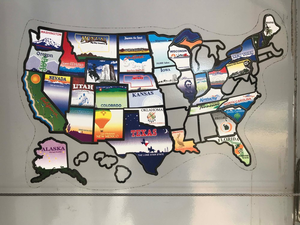 This is what our map looks like now and I am really happy that we were able to fill in so many stickers. We have officially visited all the states in the west now, although as you can see we have several back east to get.