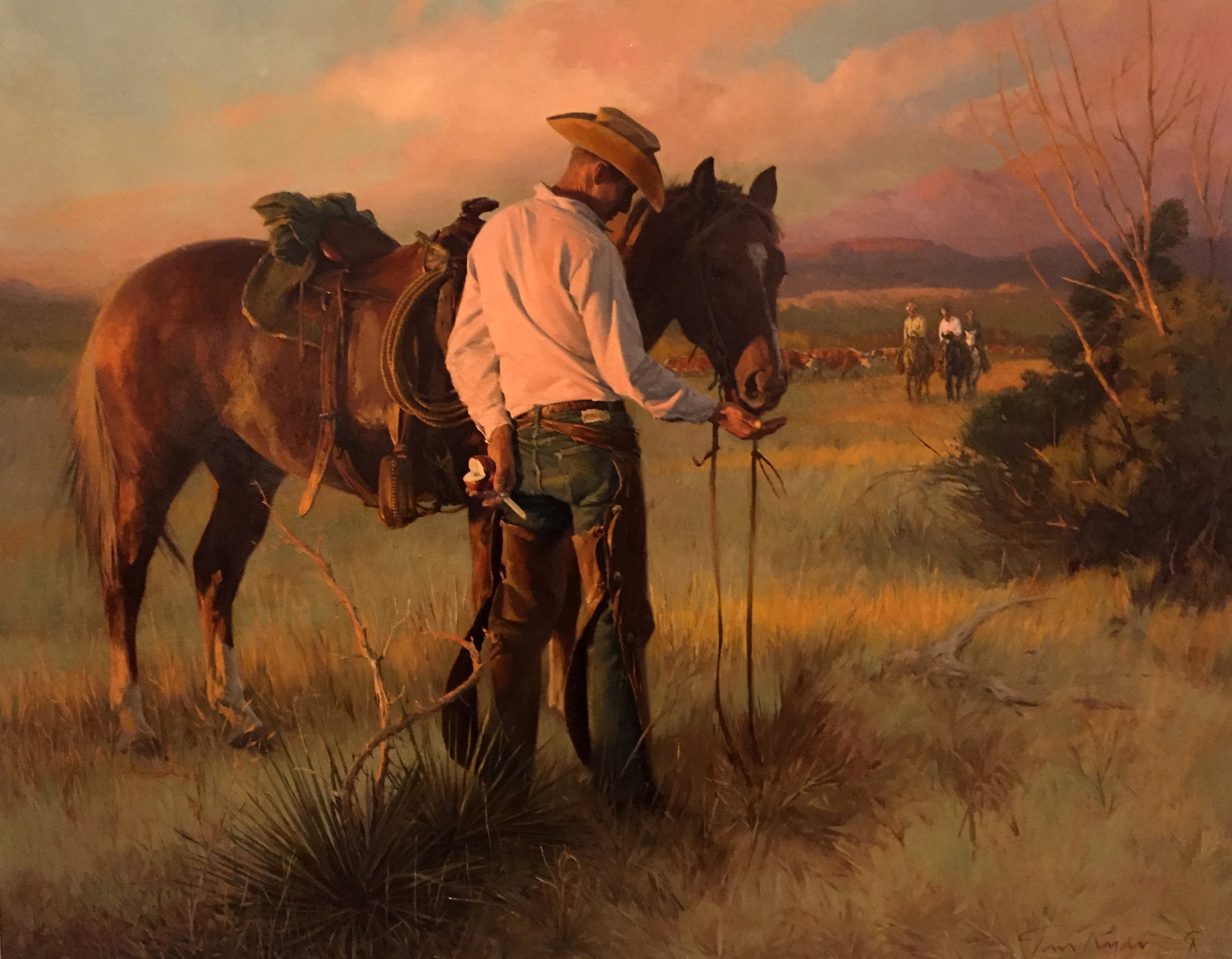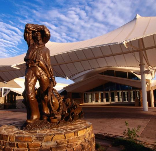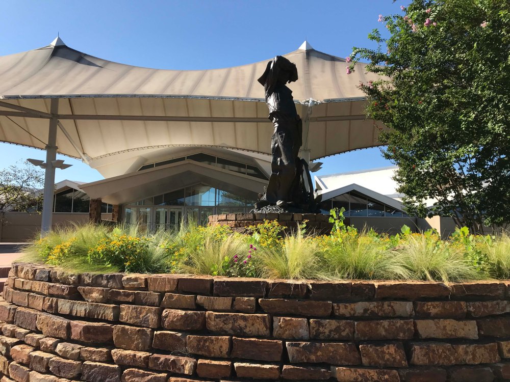 Outside was really pretty. Lee noticed that this statue of a cowboy was placed so it faced the setting sun.