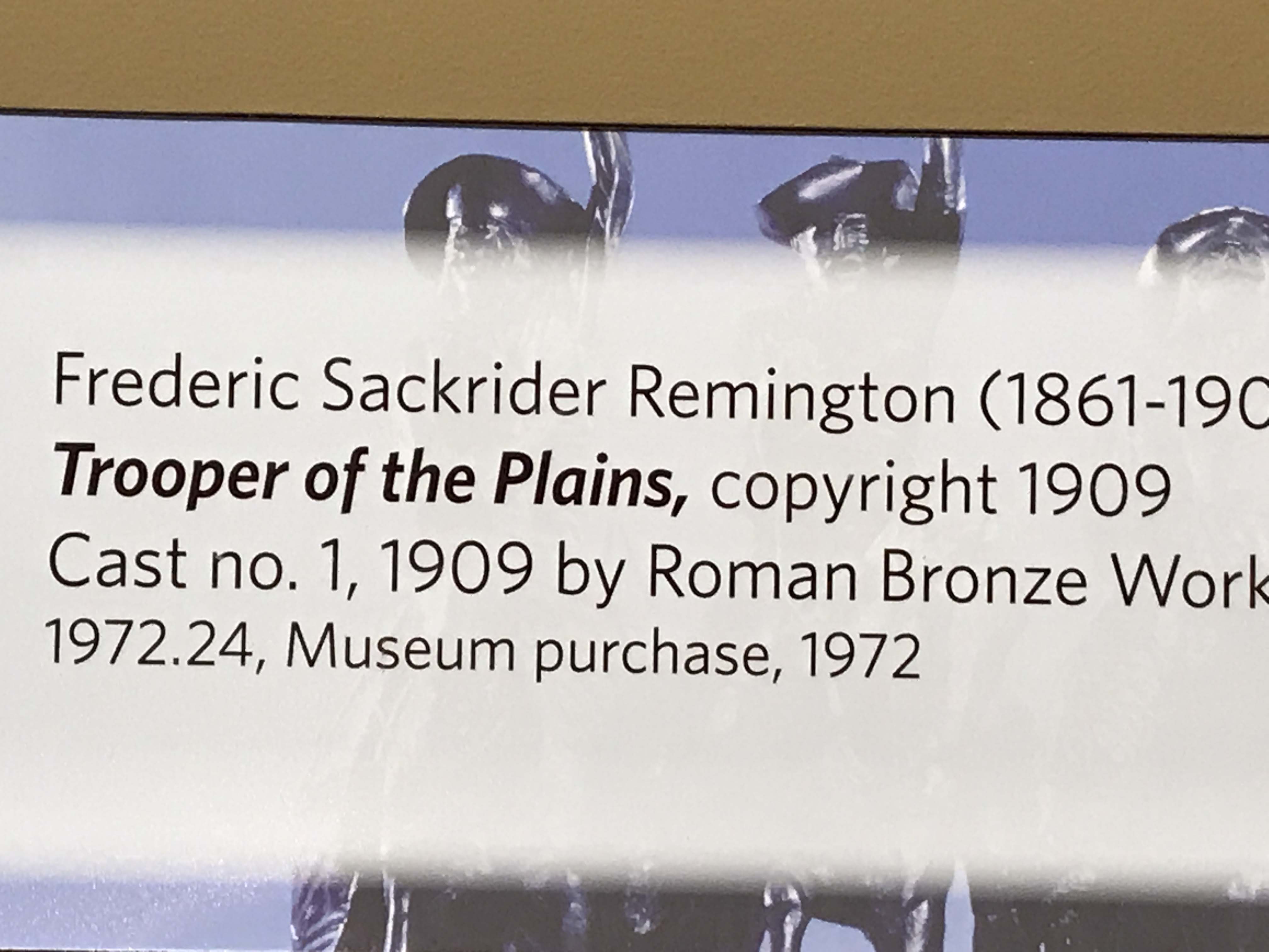 Let me say it would have been well worth the $12.95 fee but we were thrilled to get in for free. There are multiple rooms and outdoor sculptures and it was really, really nice. The only downside was their wild west town, Prosperity Junction, was being renovated, but that just makes us want to go back and visit again the next time we pass through OKC. I’m going to be honest this place was a maze. I mean we had to really be careful that we didn’t miss anything and several times I ended up backtracking. That will tell you how good it was though, because I didn’t want to miss a thing. As we get into the pictures this isn’t really a good walk through. I’ll try to keep pictures groups as we saw things, but that may be tough. This pictures are both Lee’s and mine. I just picked the best ones. Enjoy!