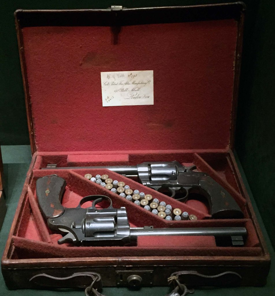 They had an extensive collection of firearms that were given to John Wayne as gifts. This is a matched set of Colts from The Shootist.
