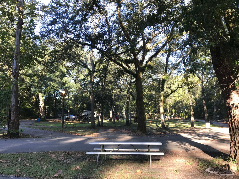 Friday night we ended up staying at Acadian Park Campground. This is one of many parrish parks in Louisiana and although it was older and at $25 (cash only) not that cheap we really liked it. Most of the sites were smaller so they ended up putting us in a pull through that was actually part of the road, but we had a nice grass spot in front of us and it was a quiet campground. I will say very few of the sites were level, although ours was pretty good. I just really liked the overgrown feel.