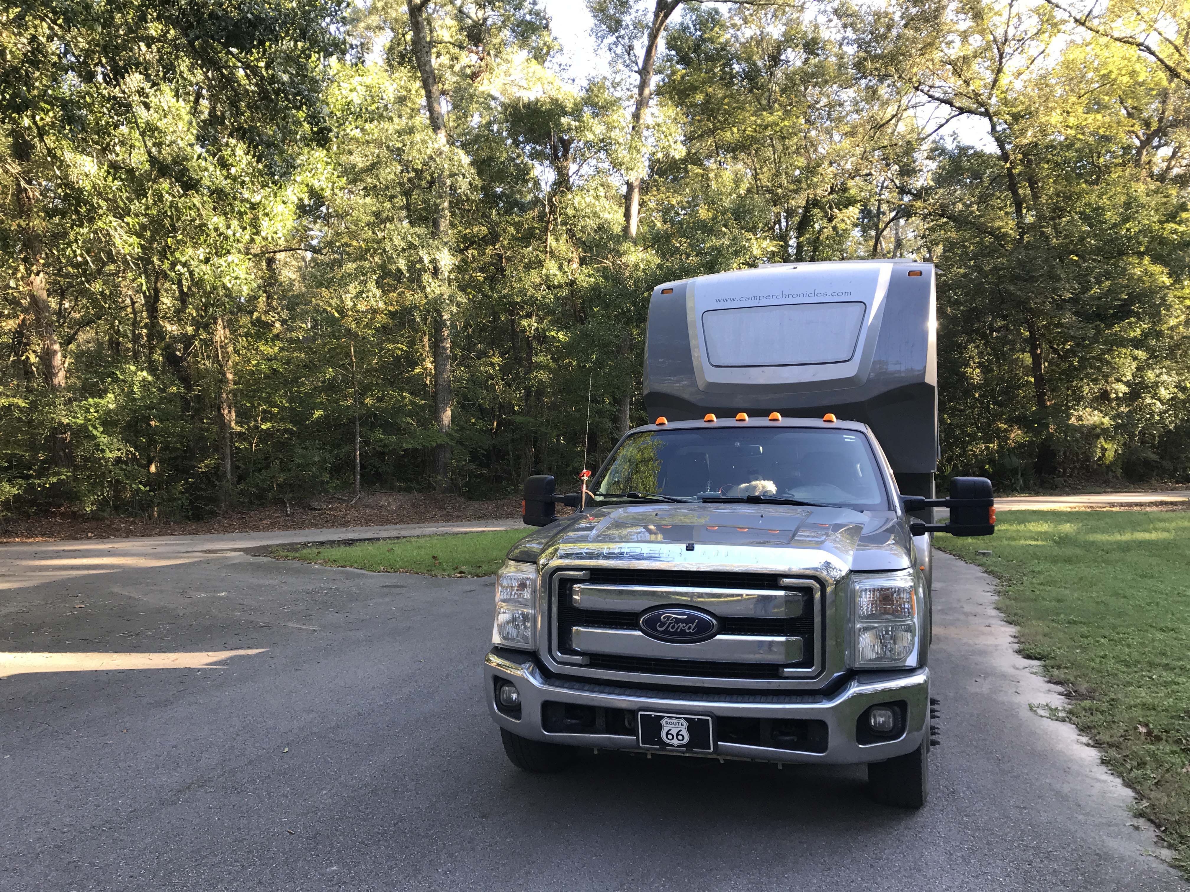 As you can see from the picture it was early morning when we left (8:13am) and again we made good time. We stopped for lunch at a Cracker Barrel with only 4 hours left in the drive and Lee asked me if I wanted to push through. Under normal circumstances I would have said no, but I wouldn’t have to work from the truck on Monday and we could see our daughter sooner. We ended up pulling into the KOA around 8:15 pm and it was pitch black. It was a 13 hour day (we lost an hour to time change) and the site they had us in was a back in. Thankfully a nice man next door brought over a lantern for us and that along with a flashlight I held showed Lee the boundaries. He did a stellar job backing in and I told him to leave lining it up until the next day. We ate a sandwich and watched a little TV then both fell into bed, happy we would be staying still for awhile.