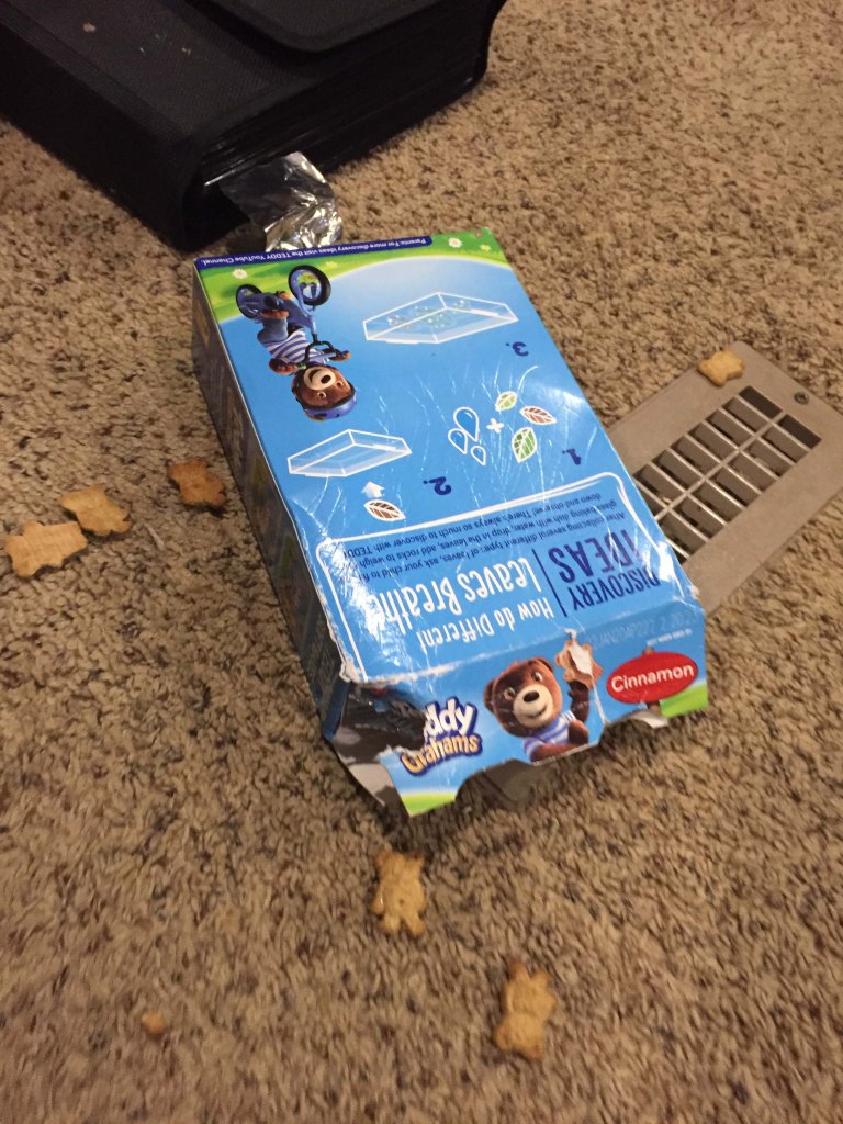 A chewed up box of cookies that I munch on at night and occasionally share with him. Bold statement.