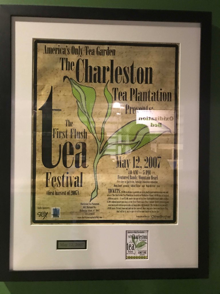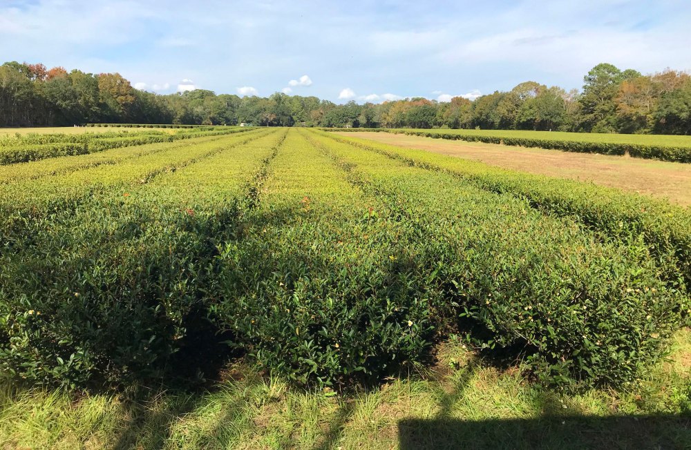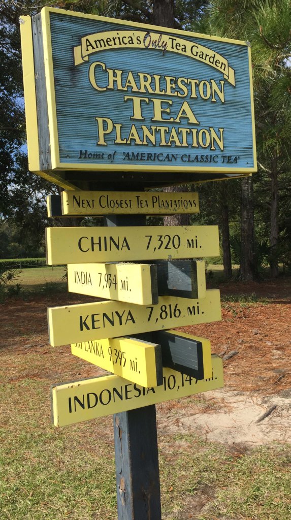 In the 1880s the Pinehurst plantation brought tea plants from China and grew them in South Carolina.  Eventually the plantation changed hands and the tea plants grew wild.  The weather here is  near perfect for the tea plants to grow, with lots of rain, heat, and sandy soil.  Tea is an evergreen plant and there are actually plants in China that are over 600 years old.  Since there are no insects or animals anywhere in the country that eat the leaves (they don’t like the caffeine) insecticides and fungacides are not needed.  The only reason tea didn’t completely take over like kudzu is that the root system is interconnected and it doesn’t like soggy roots.  Enough of the tea survived that in 1963 the Lipton Tea Company was able to grab some cuttings and transplant them to Wadmalaw Island.