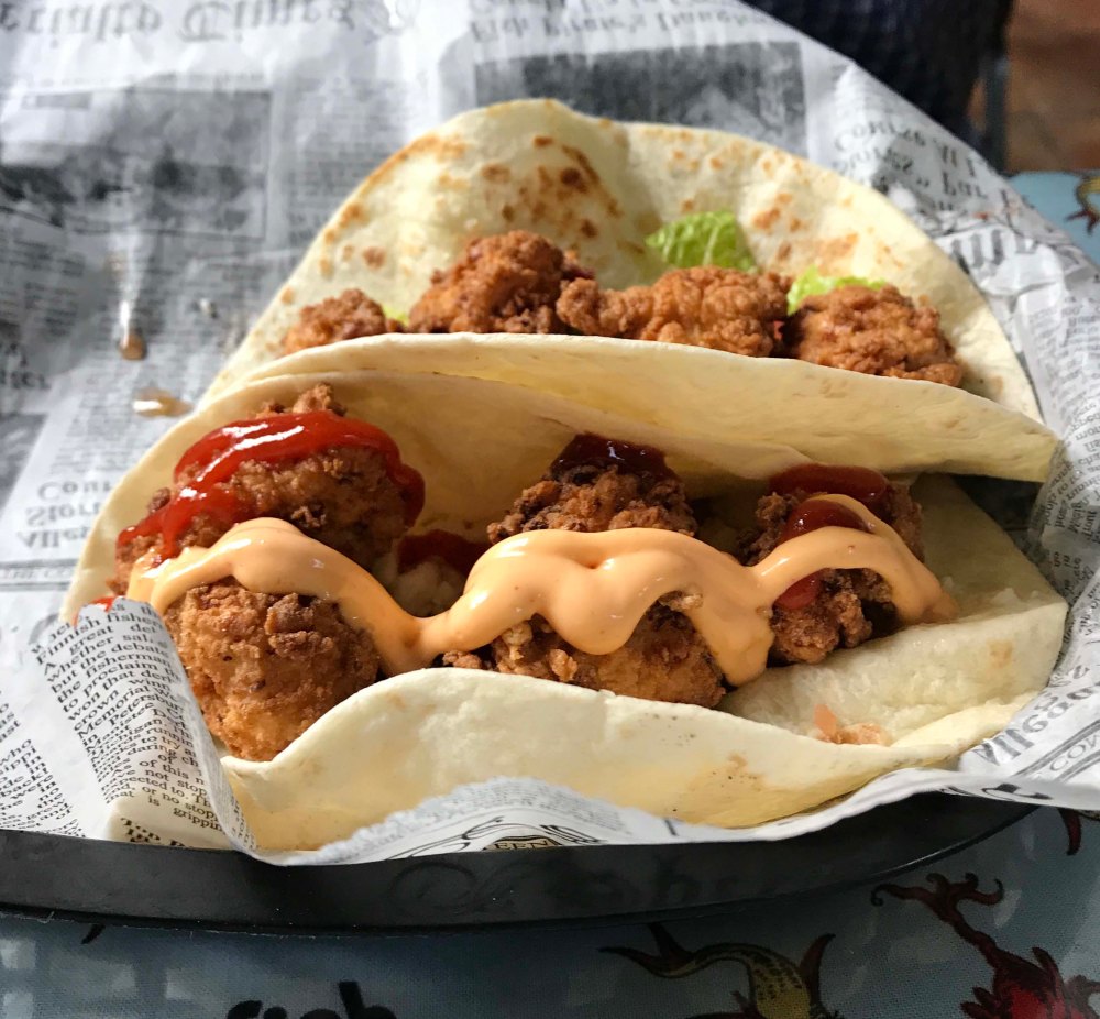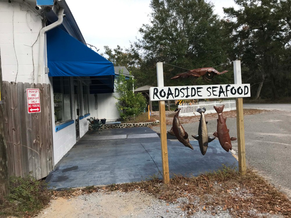 After visiting the plantation we decided to eat lunch.  I am a huge fan of the small seafood shacks on the islands and I found one called the Roadside Seafood on nearby John’s Island.  It was a no-frills kind of place and the seafood was very fresh.   Lee got adventuresome and had a taco duo of gator tail and shark bite.  I had shrimp and I loved their coleslaw.