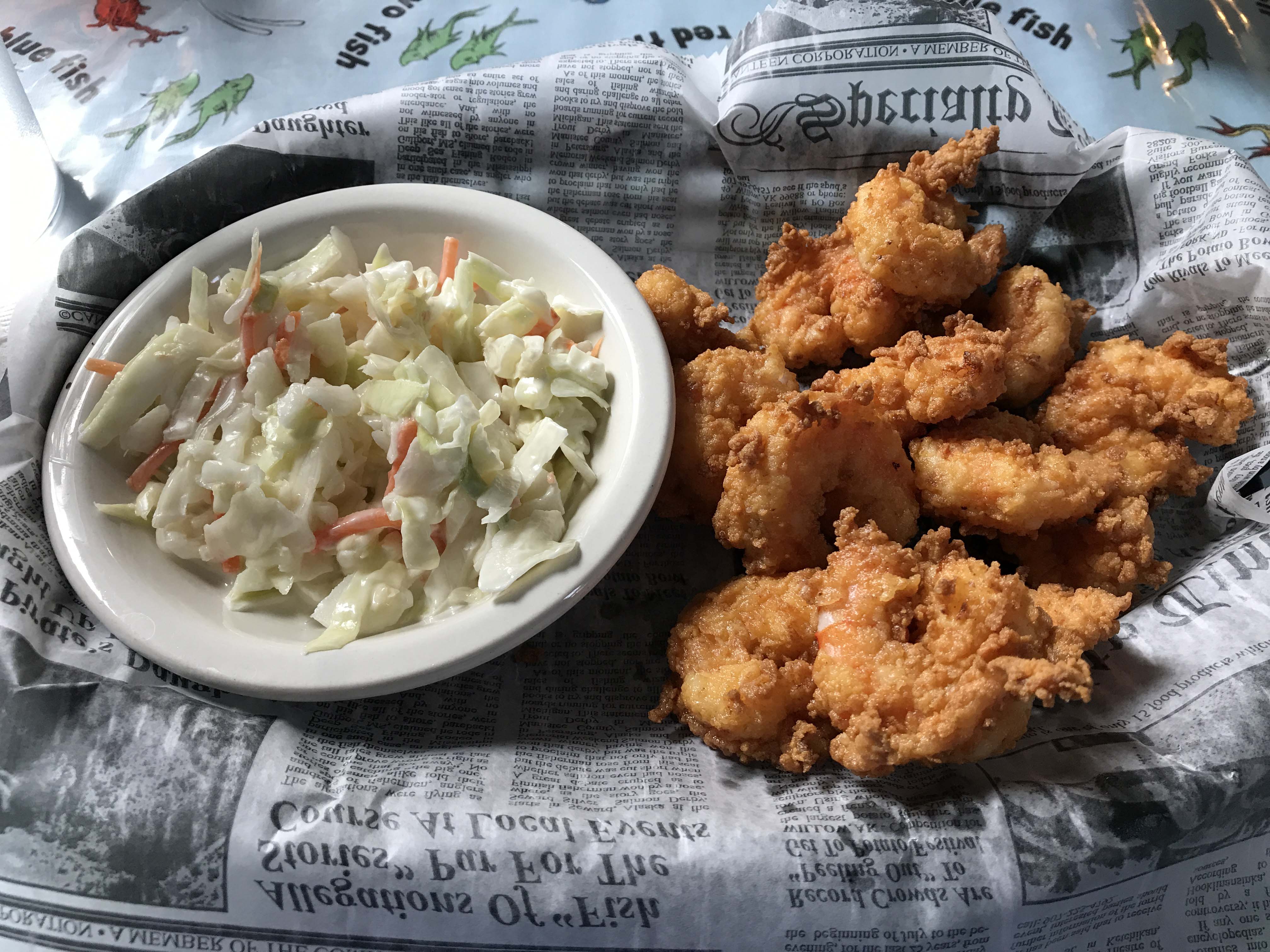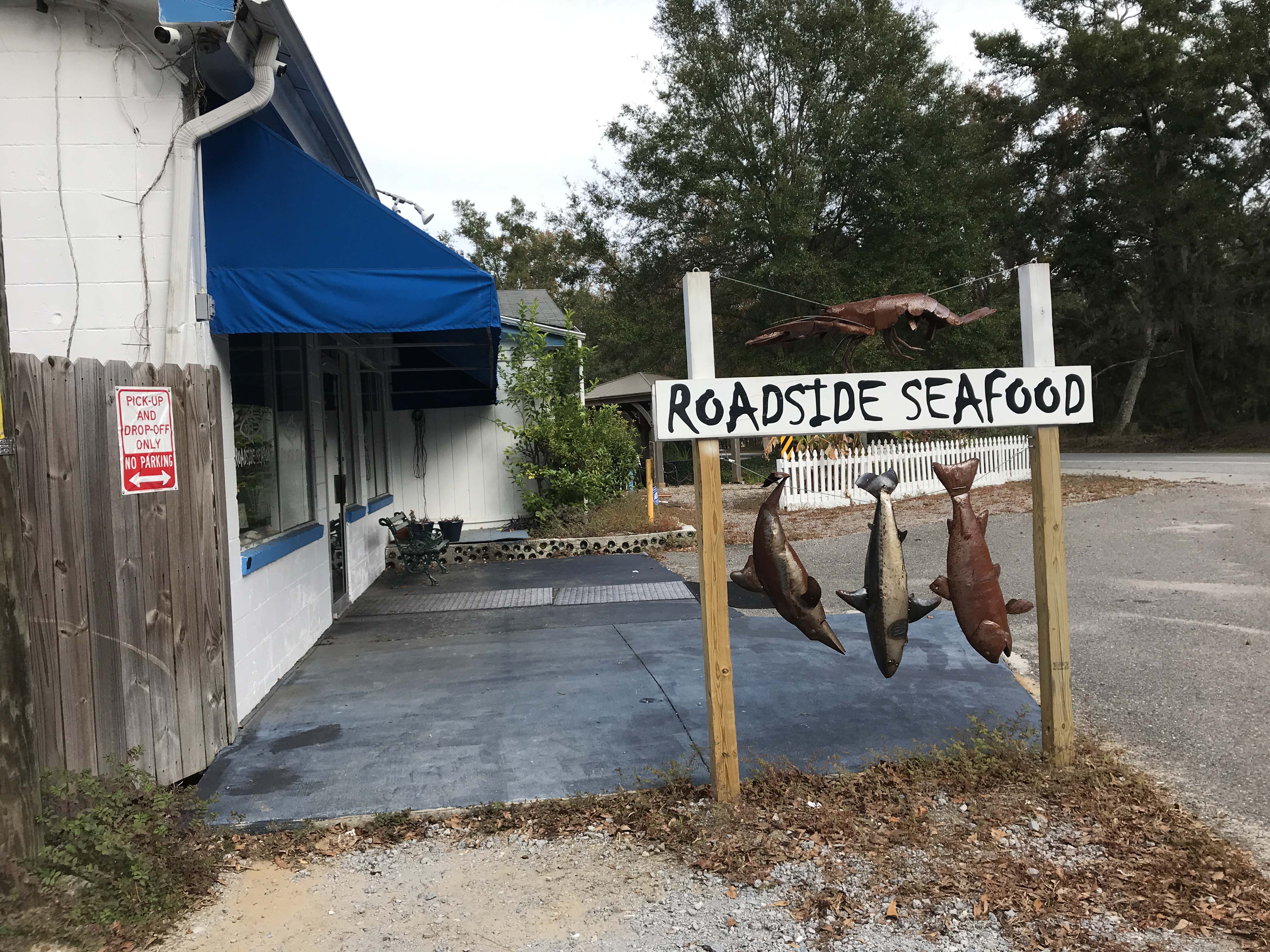 After visiting the plantation we decided to eat lunch.  I am a huge fan of the small seafood shacks on the islands and I found one called the Roadside Seafood on nearby John’s Island.  It was a no-frills kind of place and the seafood was very fresh.   Lee got adventuresome and had a taco duo of gator tail and shark bite.  I had shrimp and I loved their coleslaw.