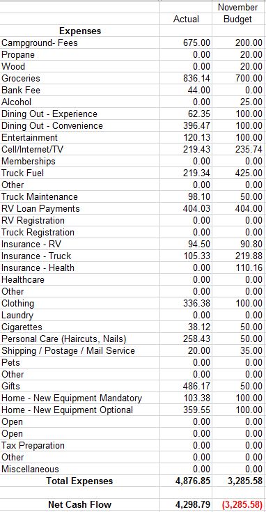 Campgrounds – $675 is our monthly rate at the KOA which is super reasonable for this area. Definitely going to adjust the budget some for next year.