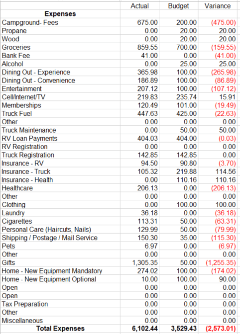 Campground – We haven’t had this many consecutive months in a campground since probably year one. That $650 a month certainly adds up!