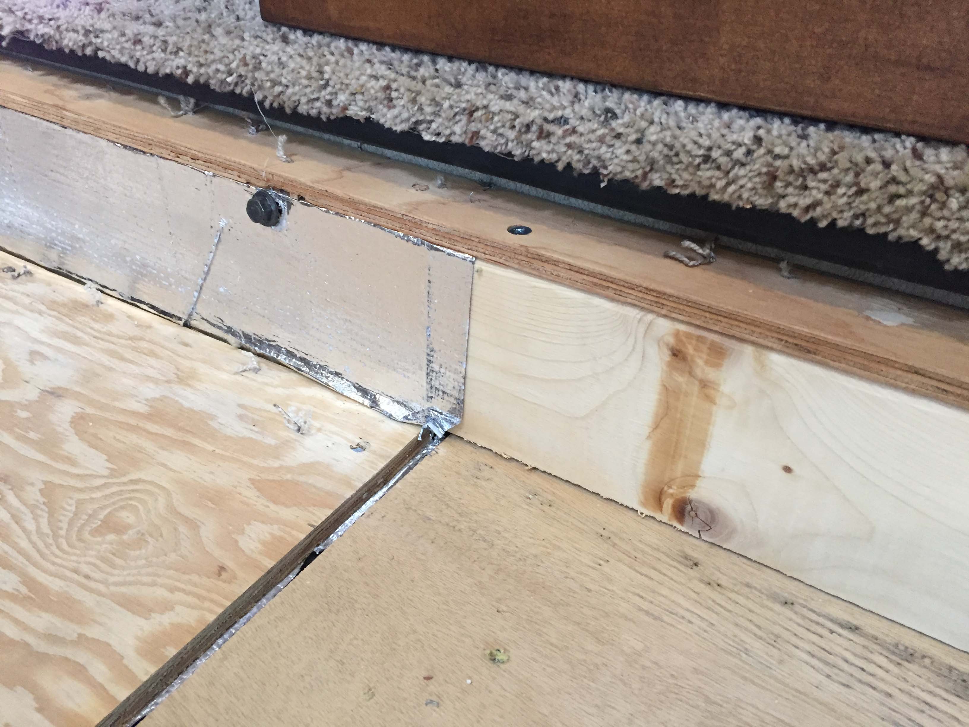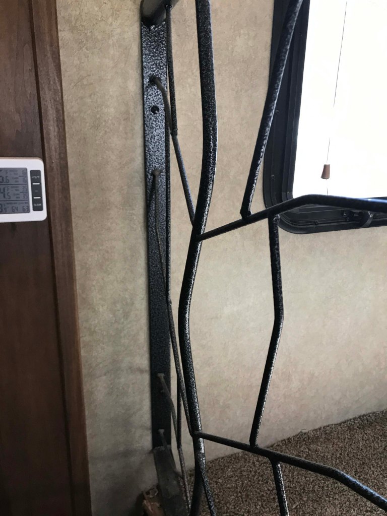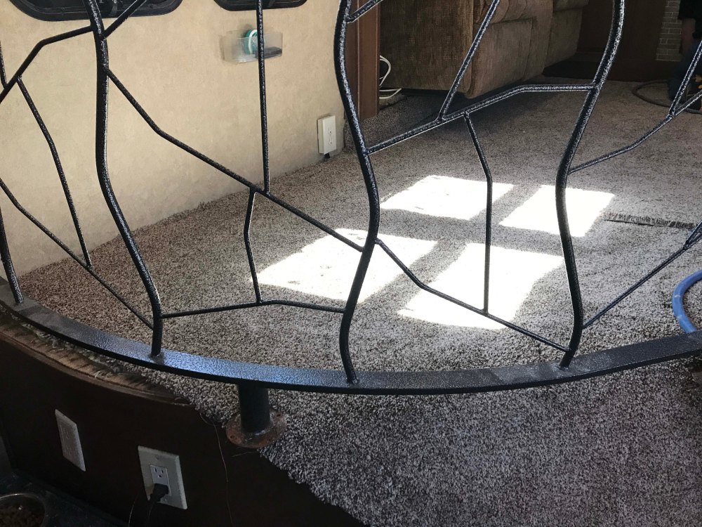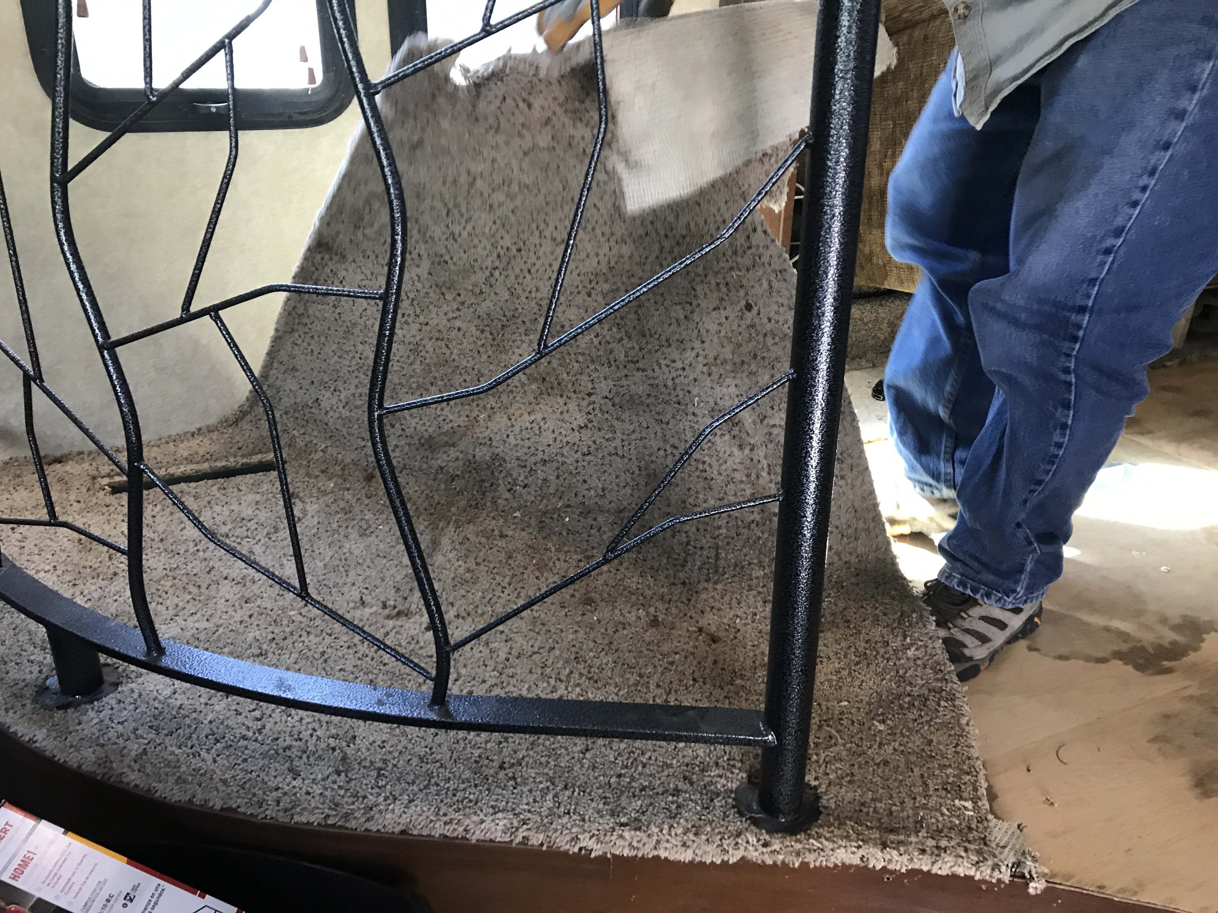 And he couldn’t remove the ones against the wall because they were rivited from INSIDE the wall. So basically he just removed the bottom ones and worked under and around the banister.
