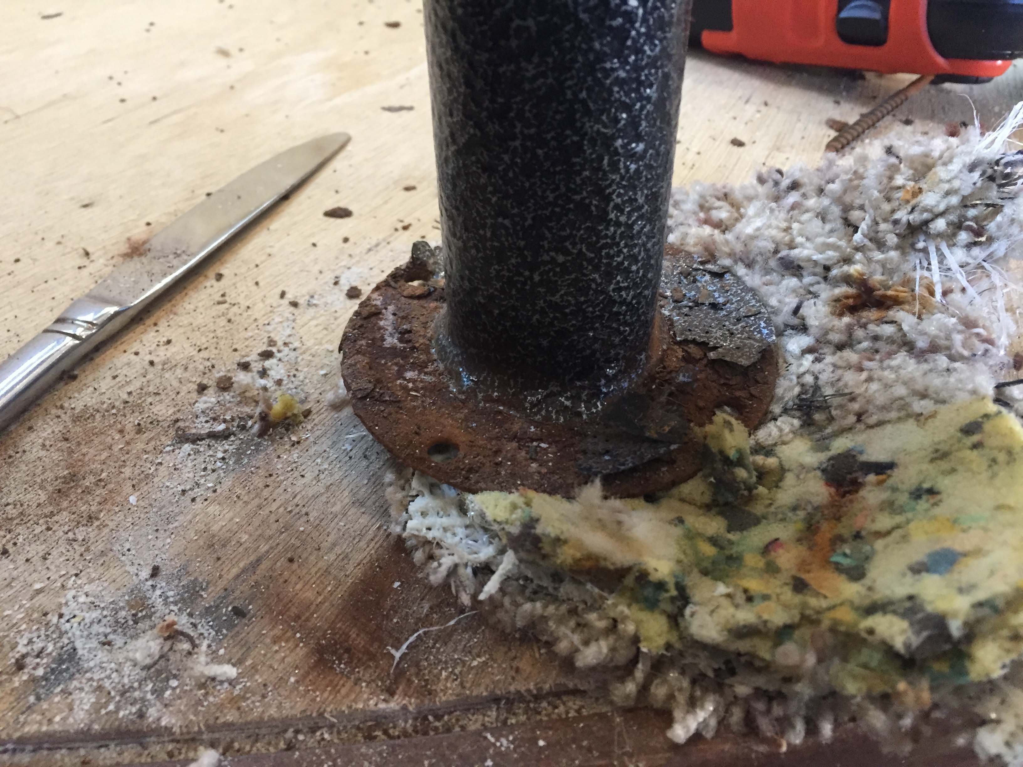 Removing the banister was a real pain point. Turns out the screws were all stripped. No clue how this got so rusty.