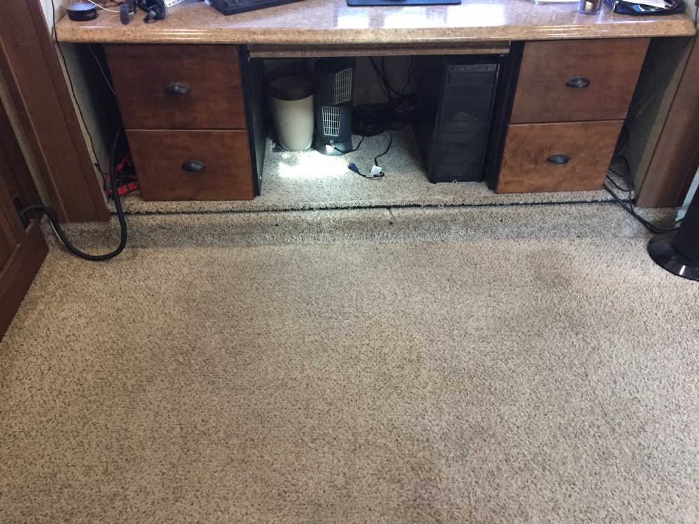 We weren’t 100% sure Lee would have enough carpet to do the slide box with the desk, so he held off on that initially.