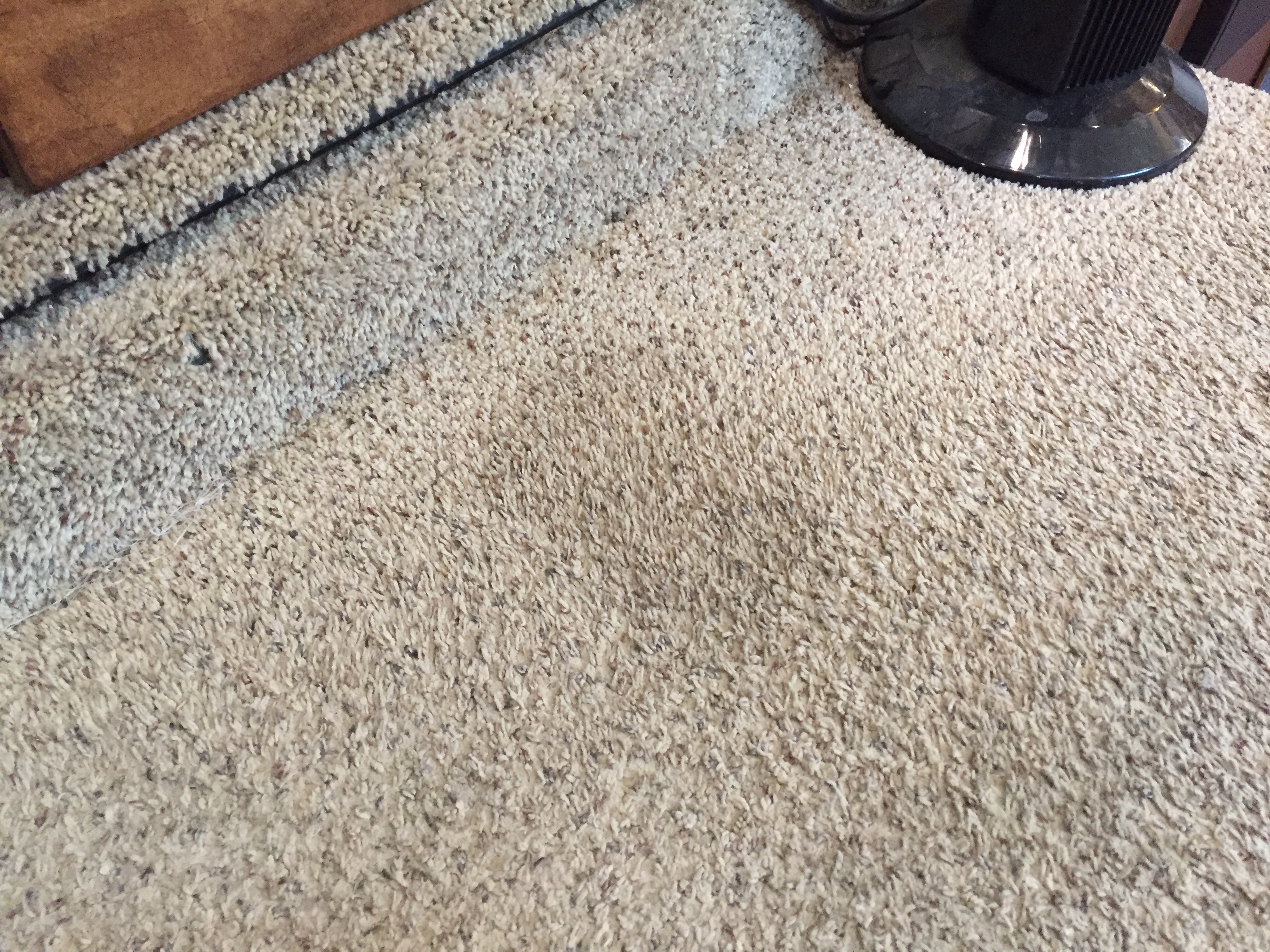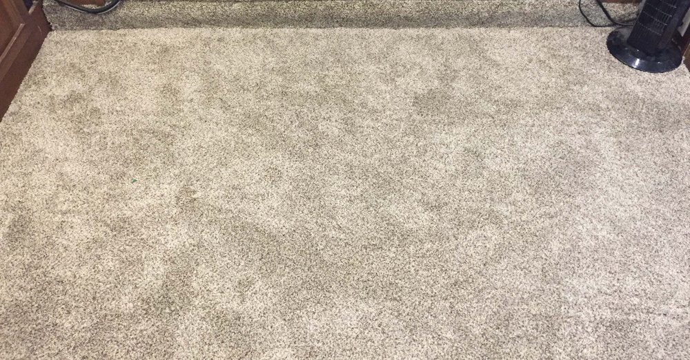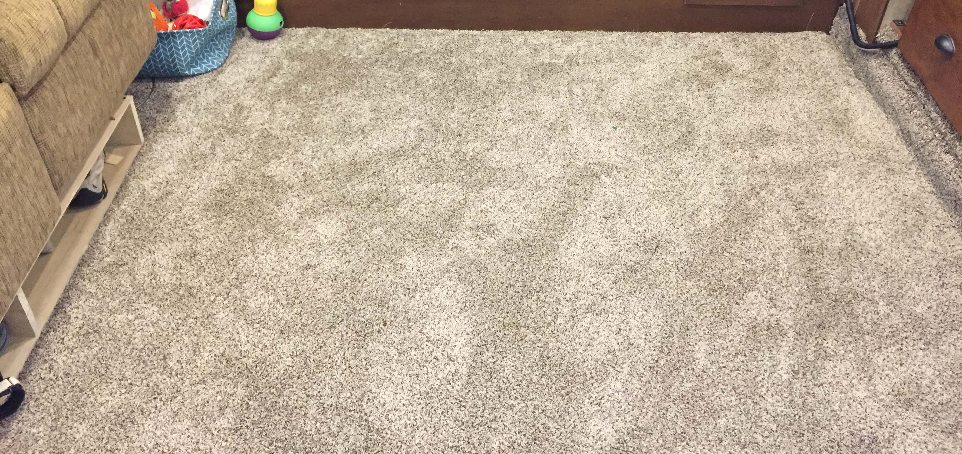 (They use the cheapest carpet they can in these things, and after 5 years we had quite a few stains on the living room carpet, plus it was just looking threadbare and gross. Also, it was a very low pile and really thin padding. Here are some pictures of what we were replacing. – Lee)