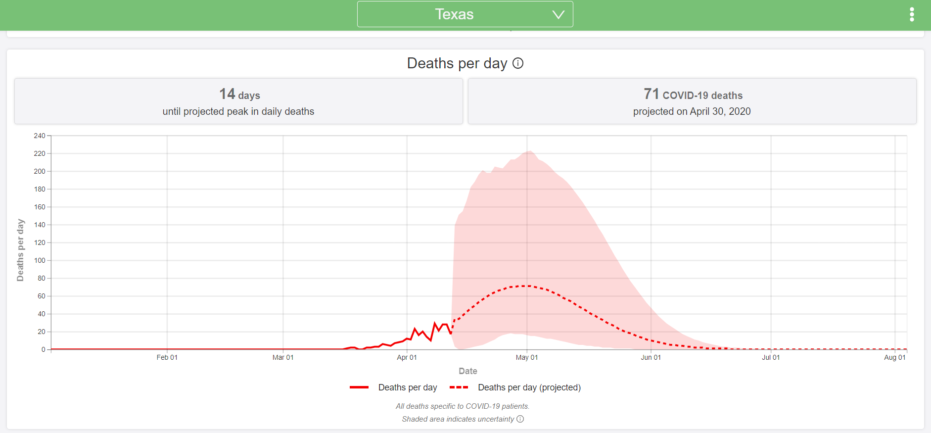 That’s the big question really. Have we flattened the curve? I watch the briefings almost every night and he and the experts talk about we have flattened the curve. They used projections from this website and again I have no reason to not find it credible. But the pictures don’t match.