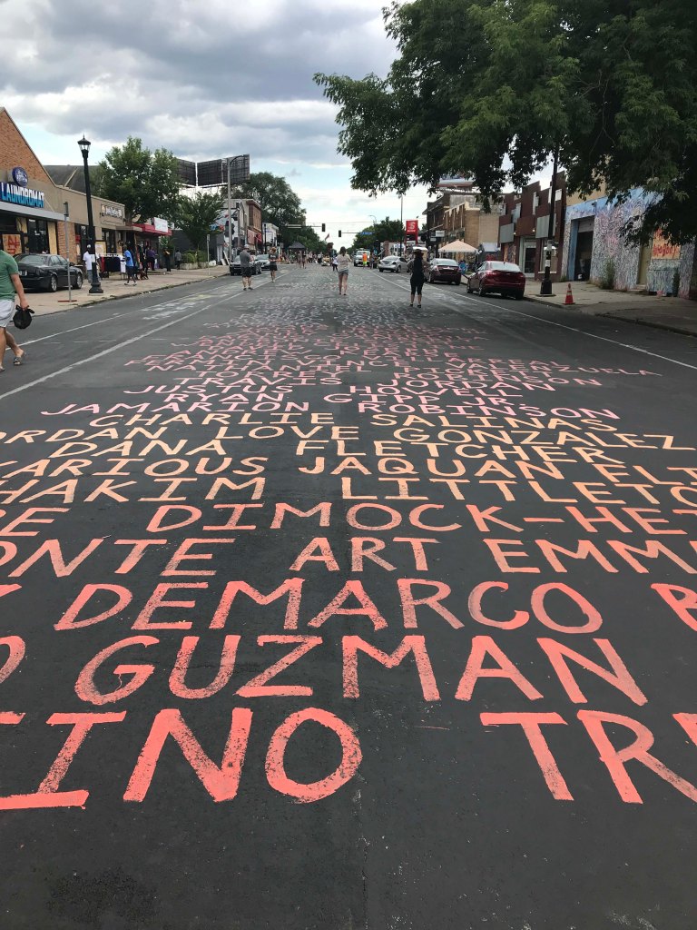 By far the most impactful thing though was the lists of names of all of the black people who have been killed by police officers.  It was written in permanent chalk along the street and the list was so long I couldn’t get a picture of the entire thing.  Walking along those names was very sobering.