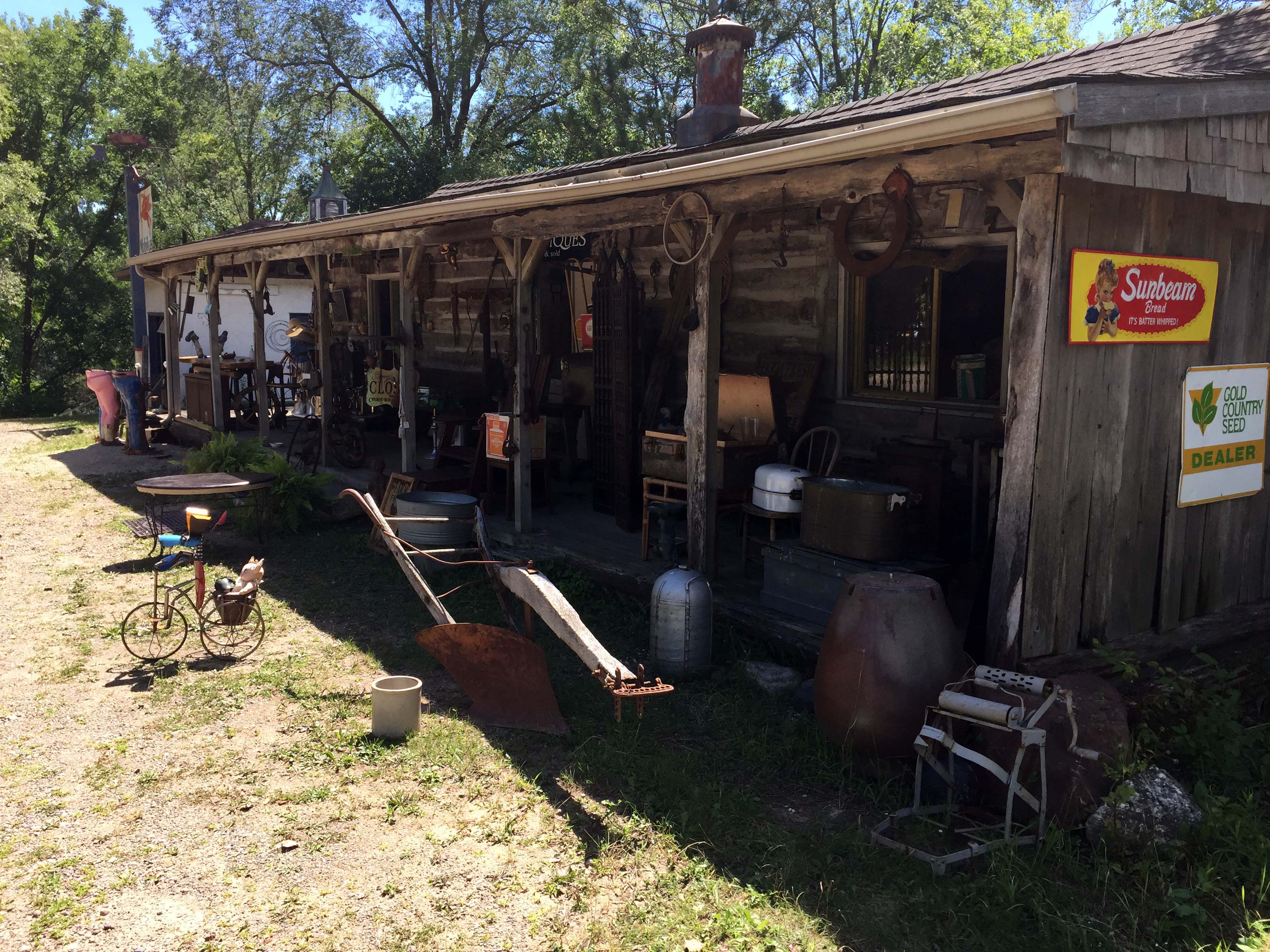 Off to the side of the parking area is a long low building that houses a lot of antiques. Looks and feels like a normal antique or “junk” shop.