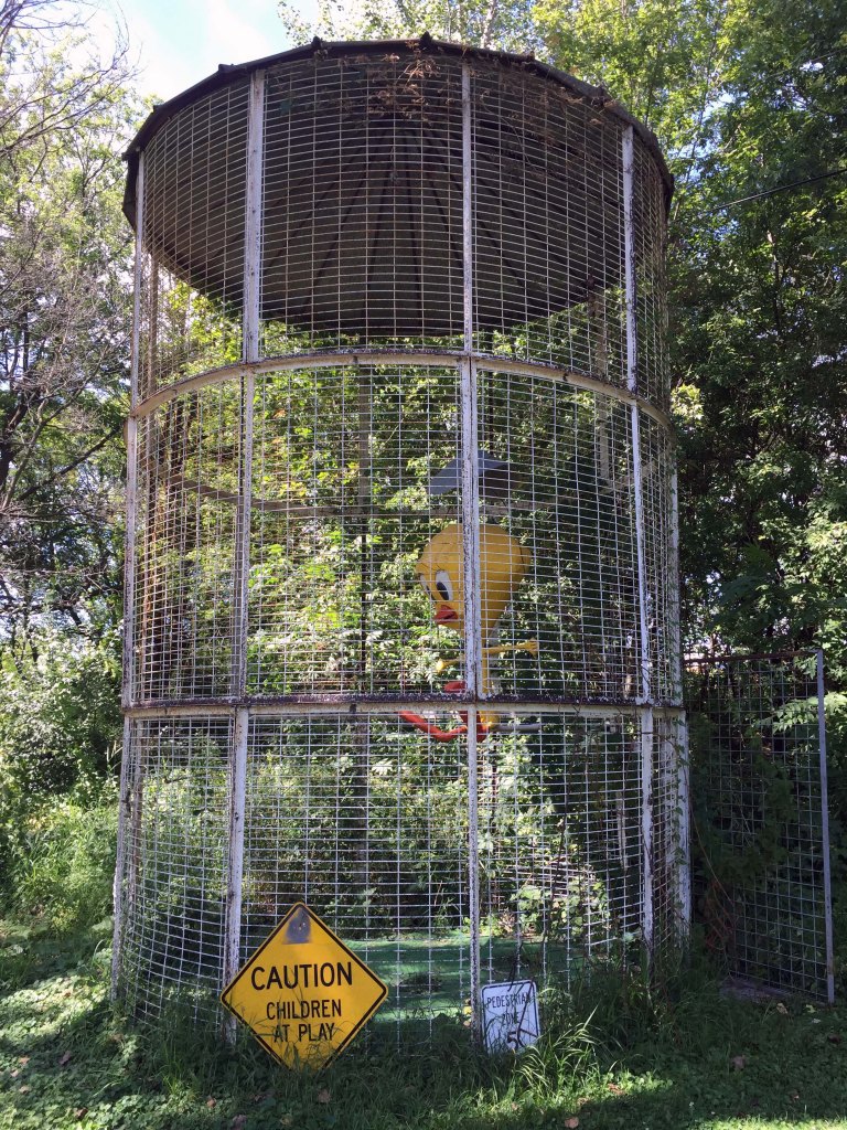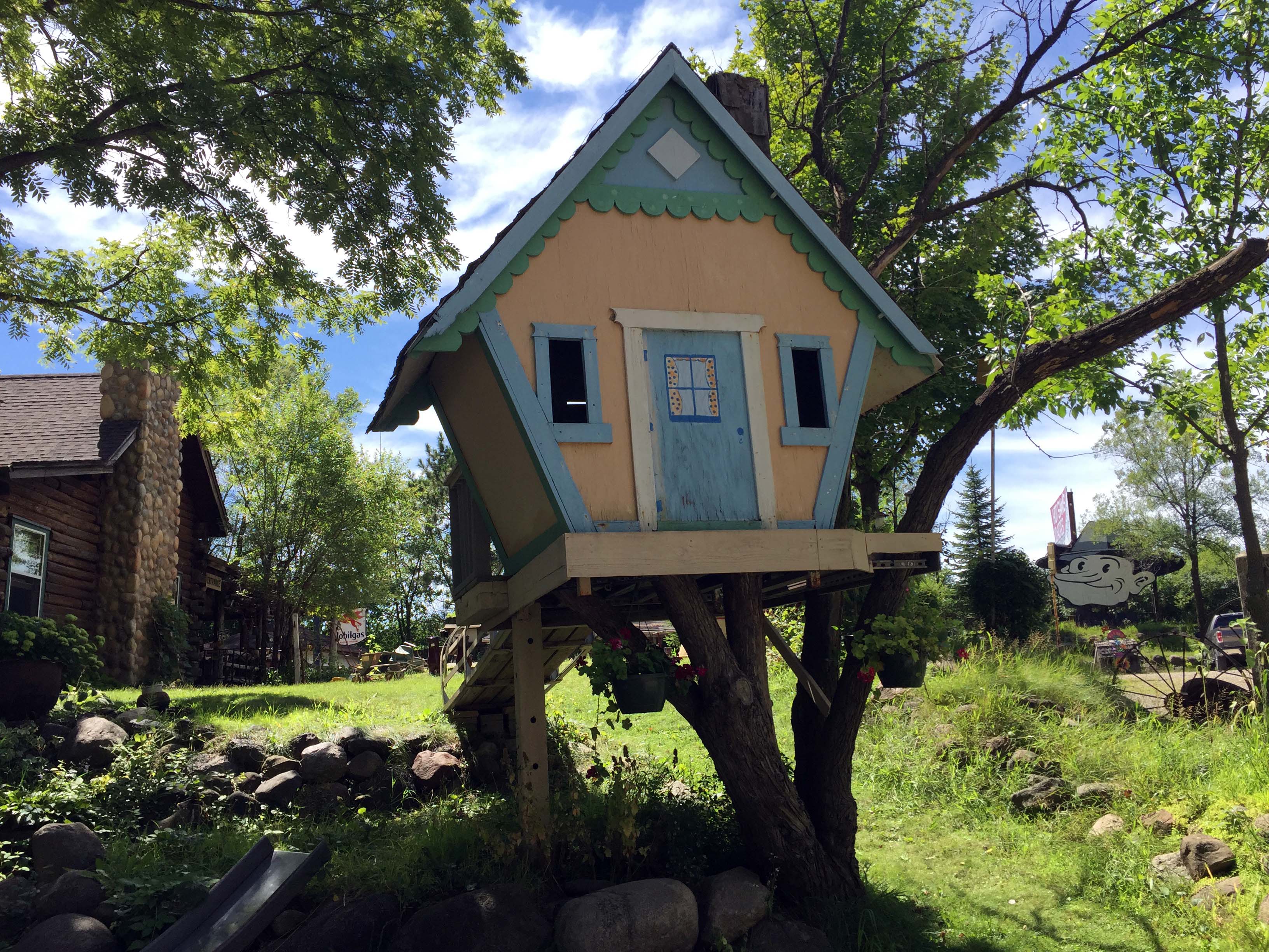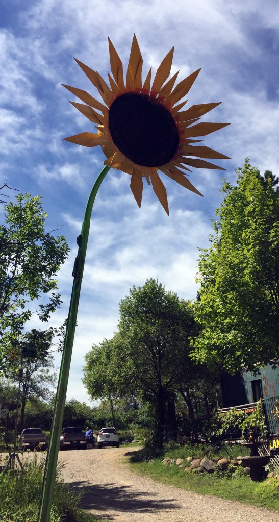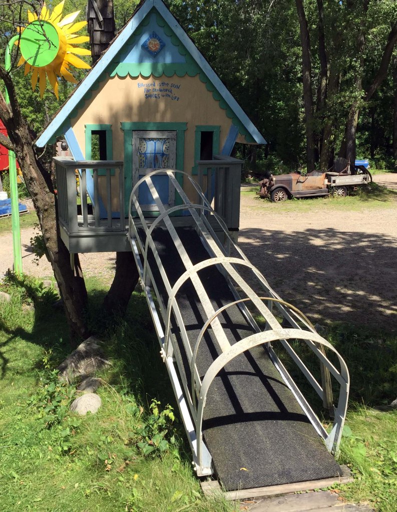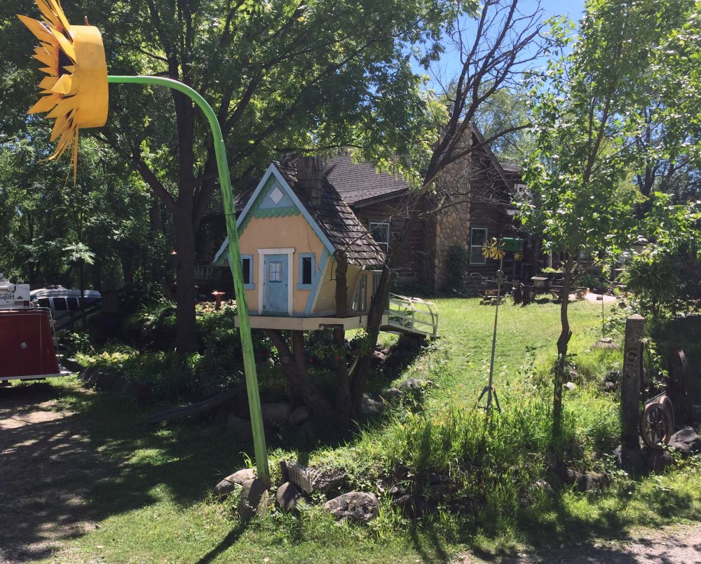 I loved this two story sunflower, and you can also see the side of the log cabin and the back of a kid’s playhouse/treehouse built and painted to look like a giant birdhouse.