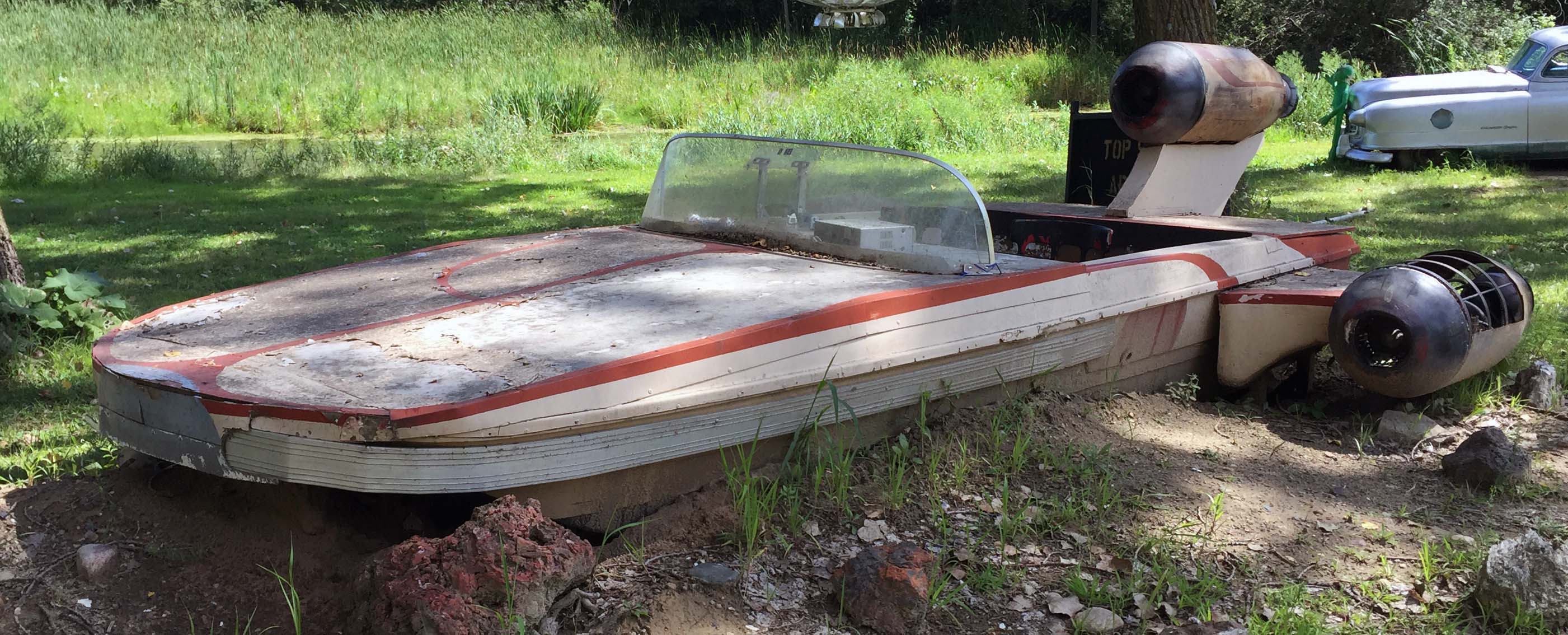 This might be one of the coolest things on the property. It’s an old boat that someone rebuilt to look like a land speeder from Star Wars. It was unclear by the way it was surrounded by dirt if it was retrofitted to drive on the ground like a car, or if it was meant to stay a boat, but it was well done, if a bit weathered. Ok  that’s  cool  – Trace